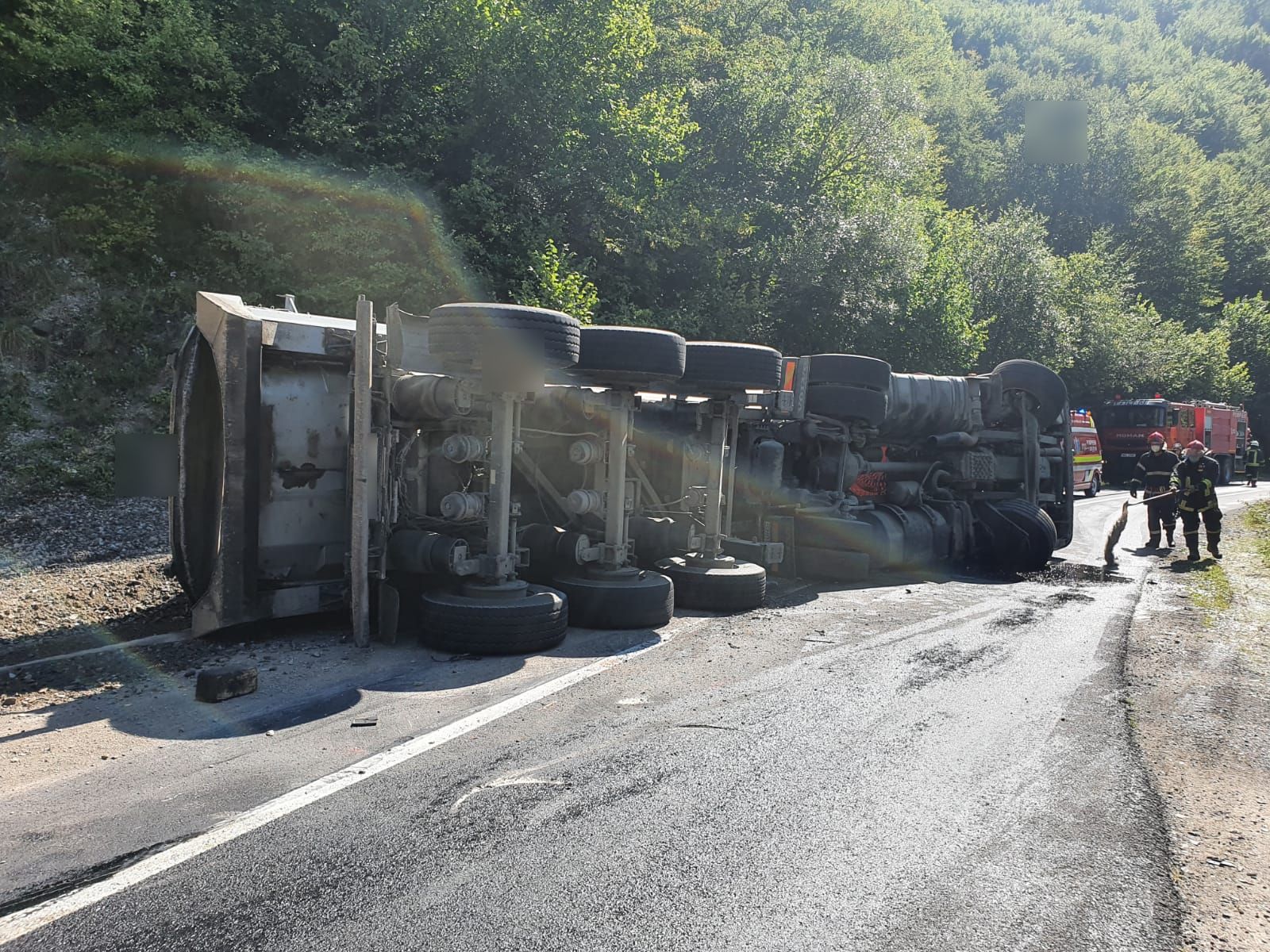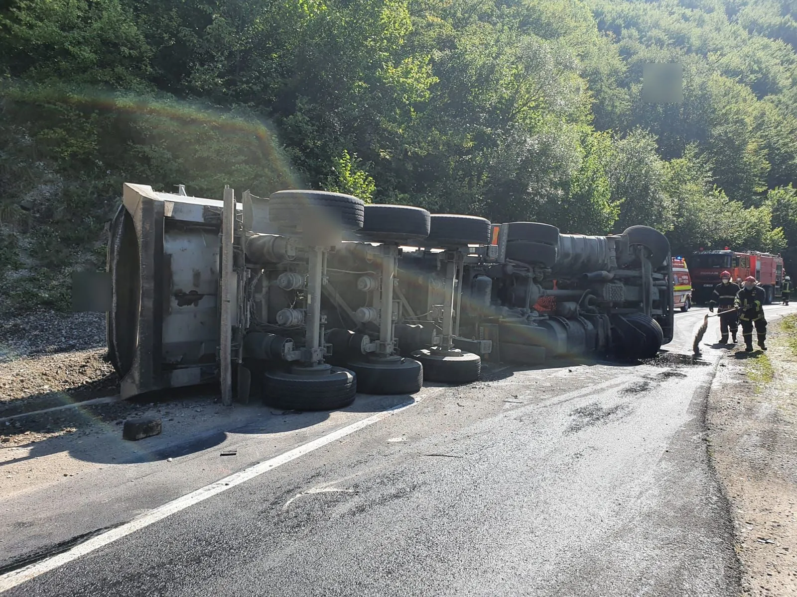 Pompierii au asigurat și măsurile de prevenire a incendiilor, ca urmare a scurgerilor de combustibil, urmând ca autobasculanta să fie readusă pe roți de către un operator privat.