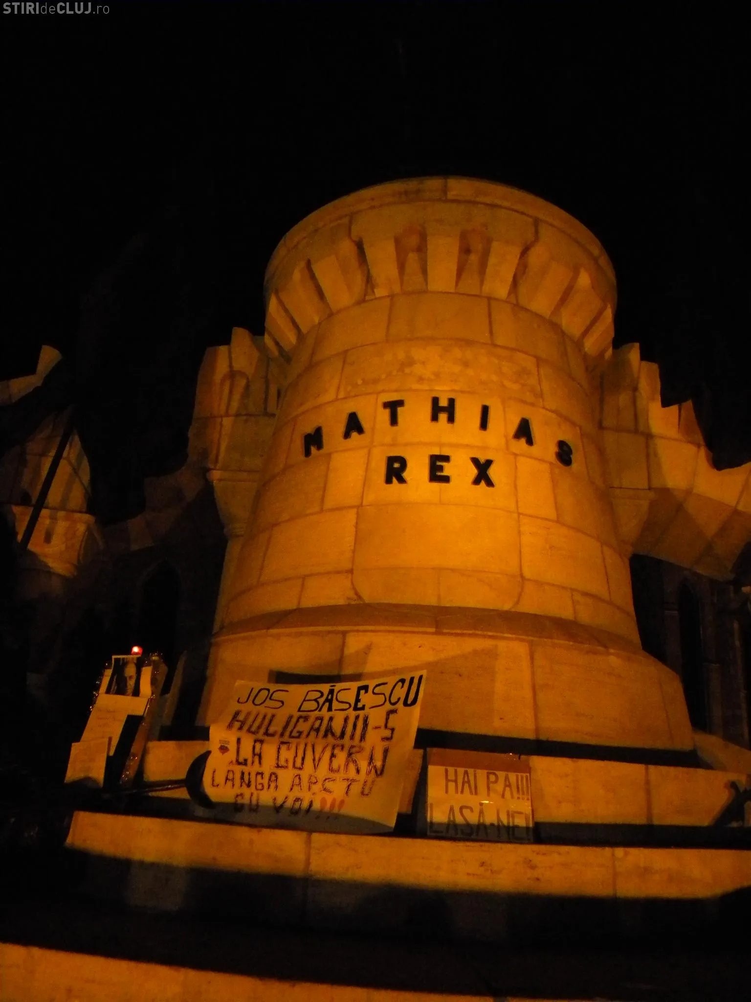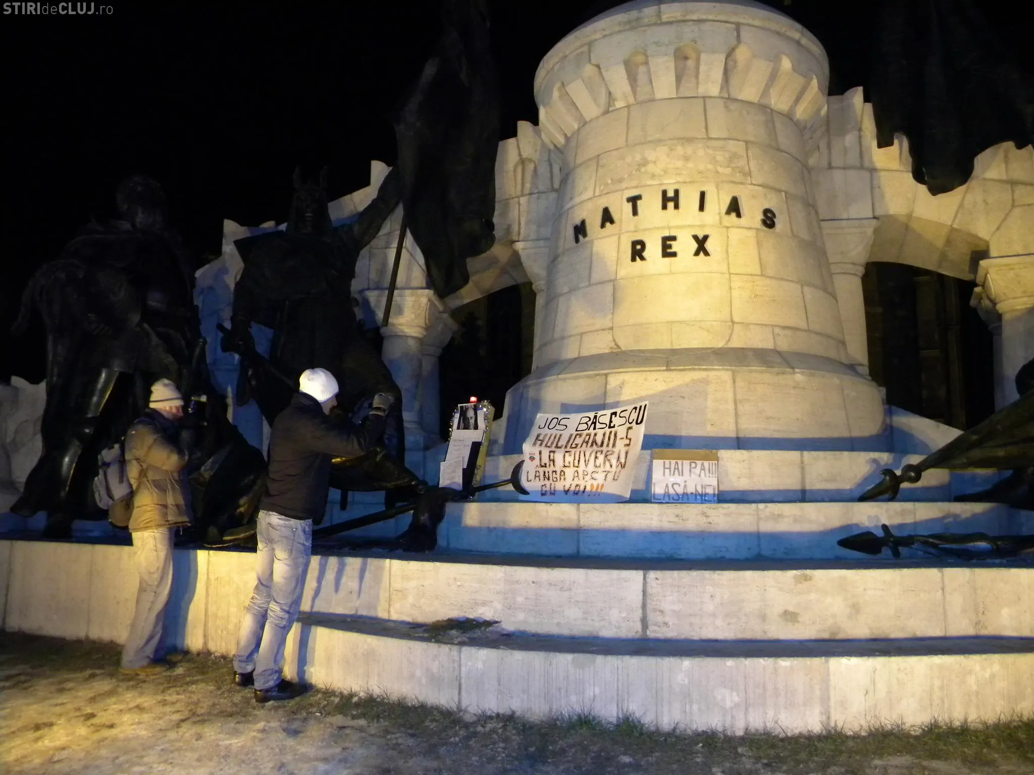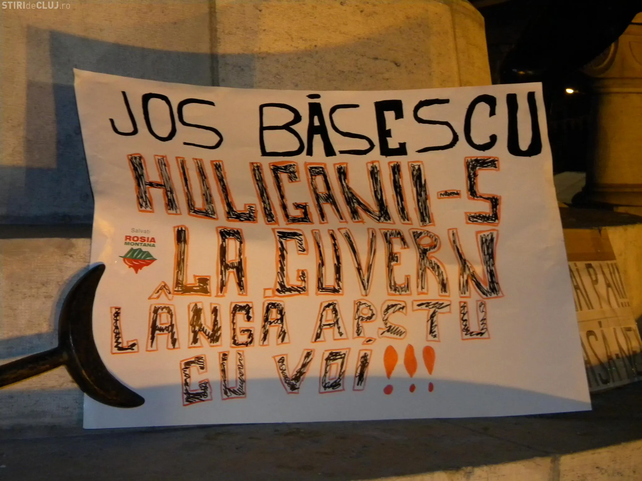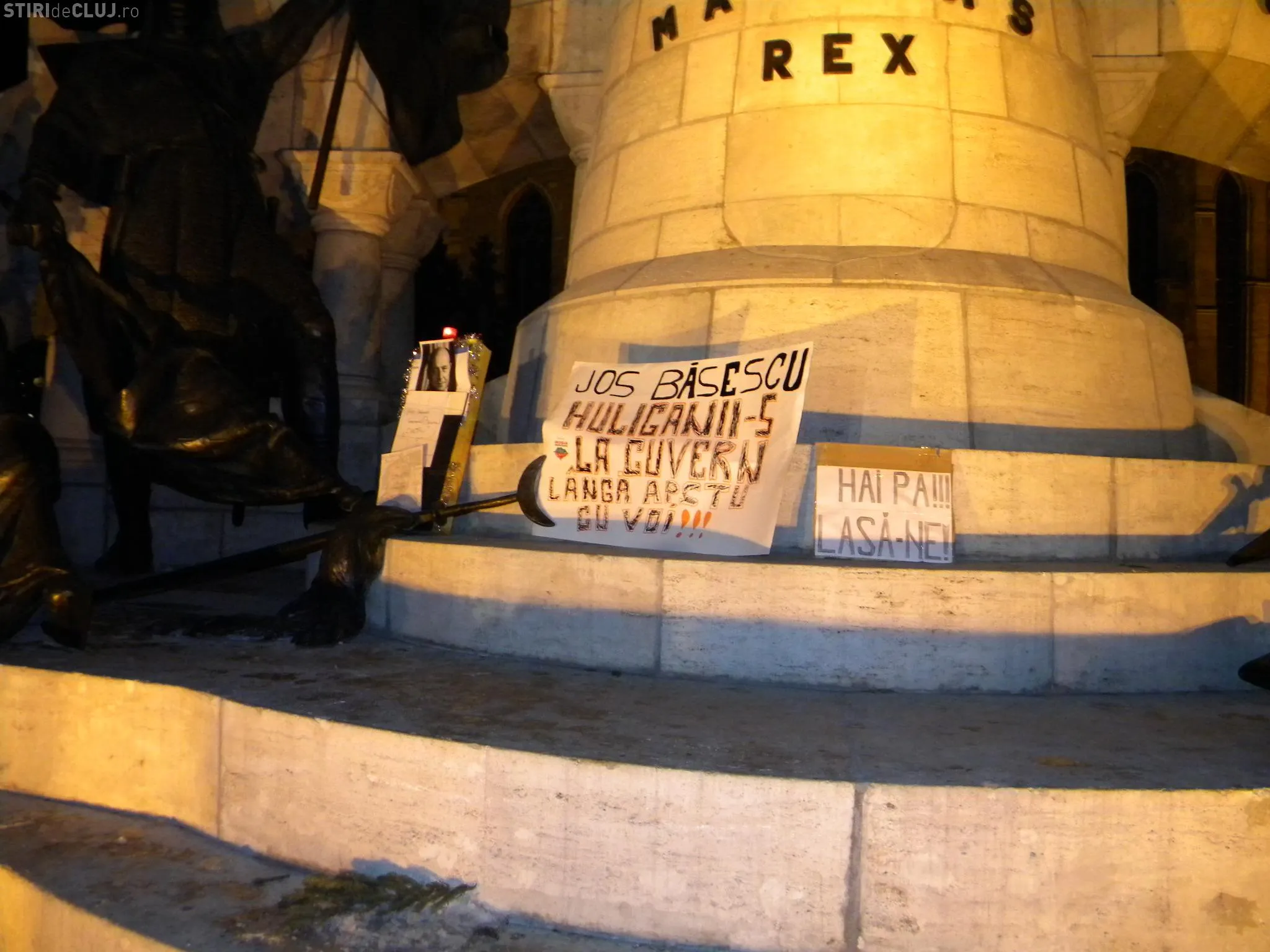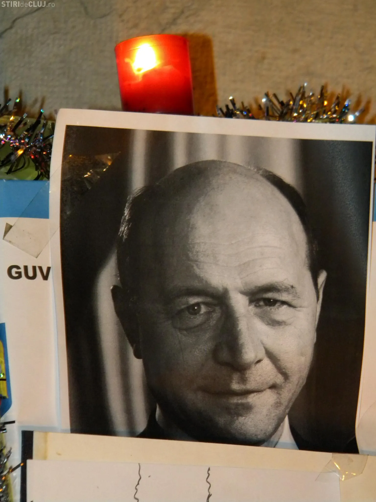 Basescu, ingropat la Cluj-Napoca! Poza presedintelui si o lumanare aprinsa in Piata Unirii de protestatari VIDEO si FOTO
