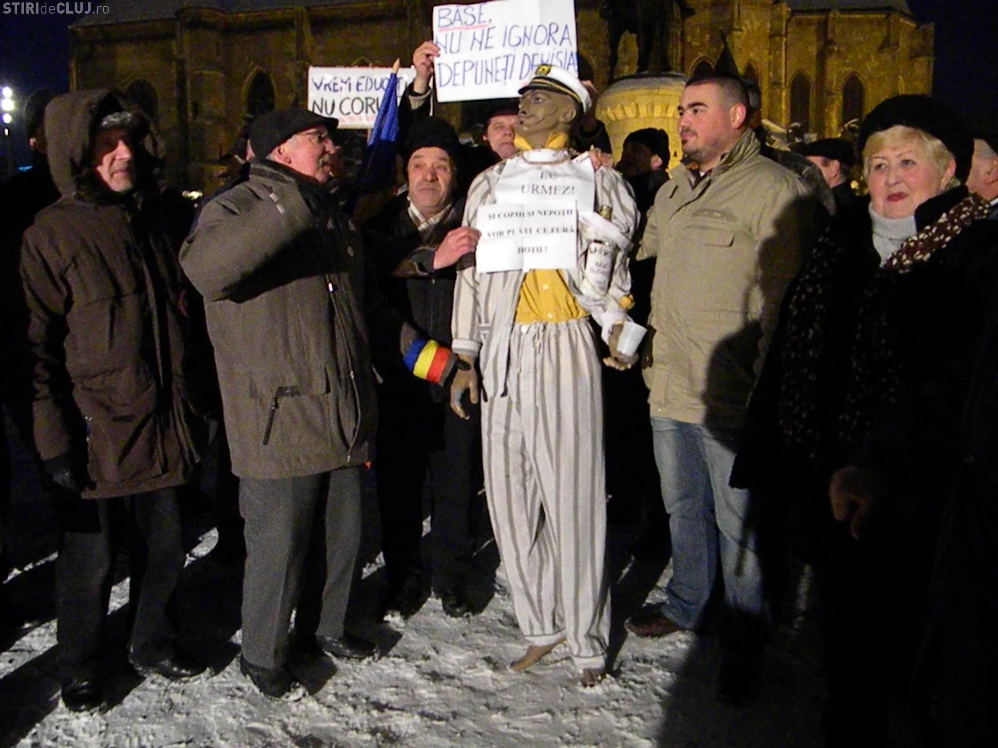 "La Palatul Cotroceni canta cucuveaua, Basescu si cu ai lui si-au gasit beleaua", "Jos Basescu", "Iesi afara javra ordinara", "Demisia! Demisia!", "Base nu uita, Borsa este casa ta", "Base la Aiud, c-ai furat prea mult", "Emil Boc nu uita, in Cluj n-ai ce cauta", au fost printre cele mai scandate lozinci la Cluj-Napoca.
