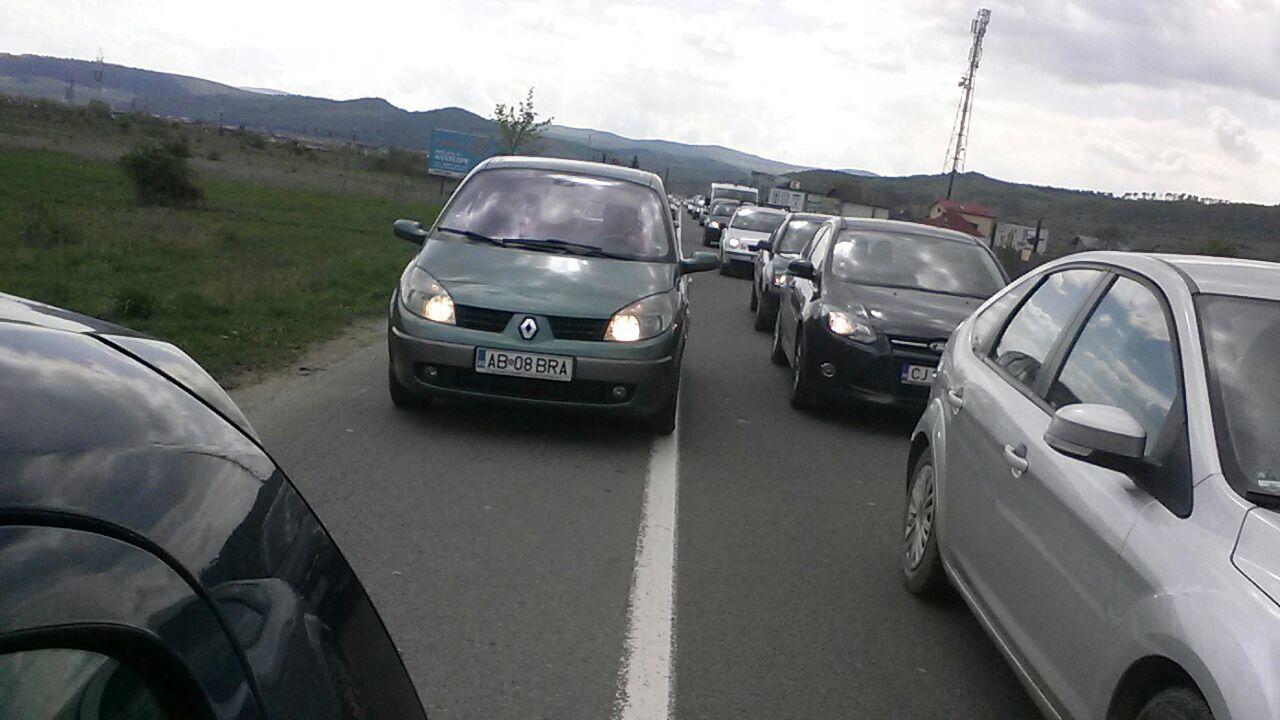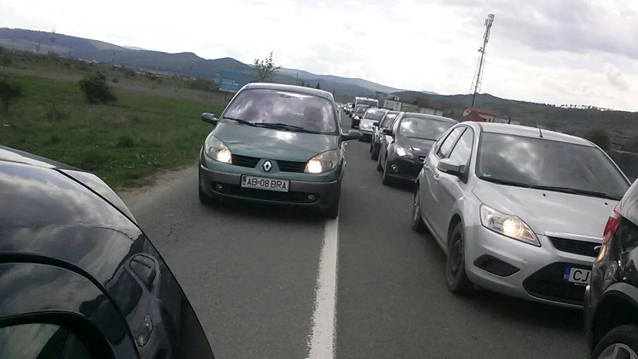Coada de autoturisme se întinde până la intrare spre Tarnița. De asemenea, la Gilău se organizează și un tîrg de animale, care îngreunează și mai mult circulația.