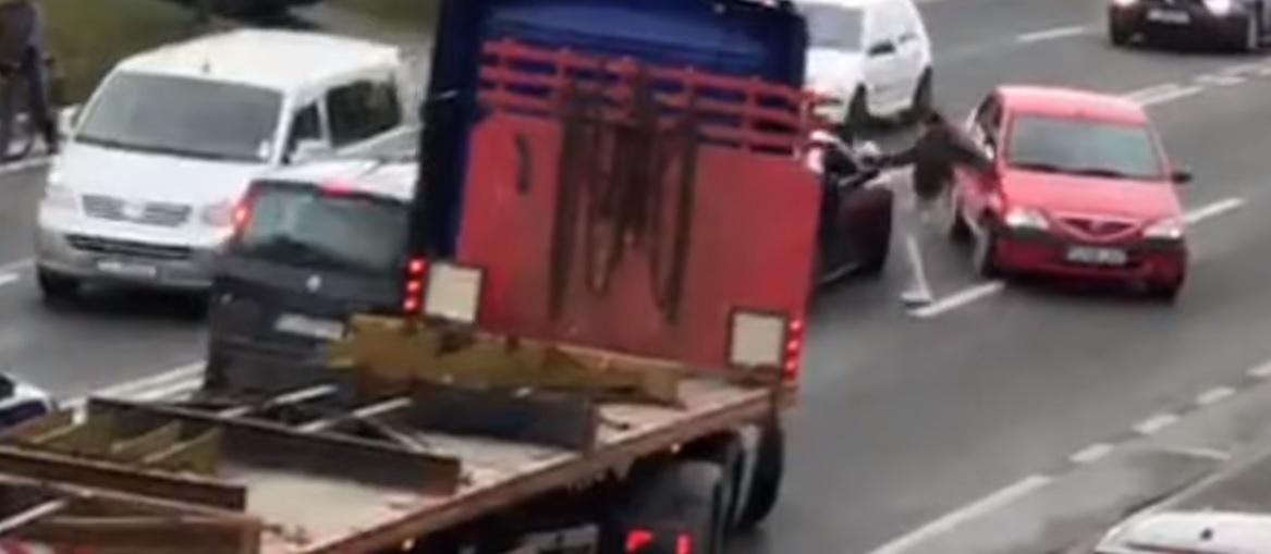 Bătaie în trafic pe Corneliu Coposu. Un interlop periculos a făcut singur dreptate în trafic - VIDEO