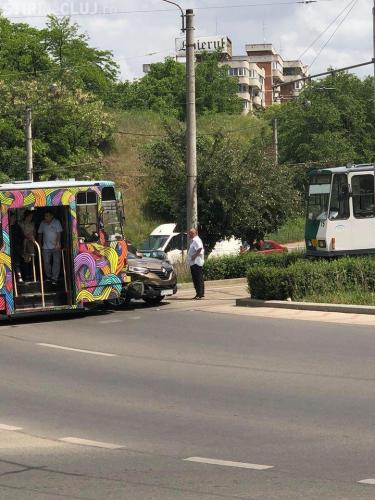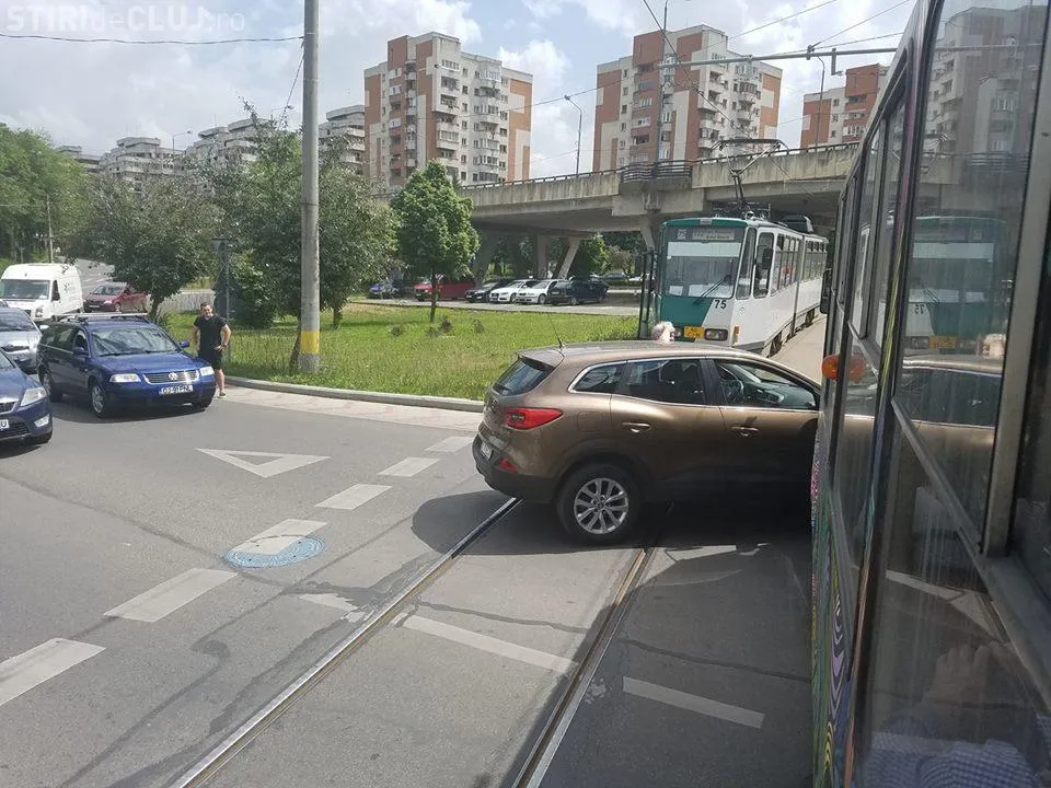 Un șofer a fost lovit de un tramvai în zona podului de la Calvaria și a fost la un pas de a fi lovit de altul care venea din sens opus.