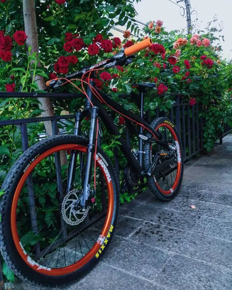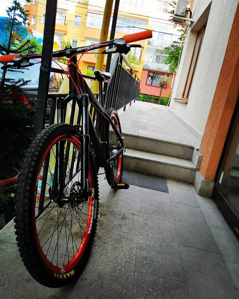 Bicicleta este negru mat cu portocaliu, culoare și aspect diferit și ușor de identificat!