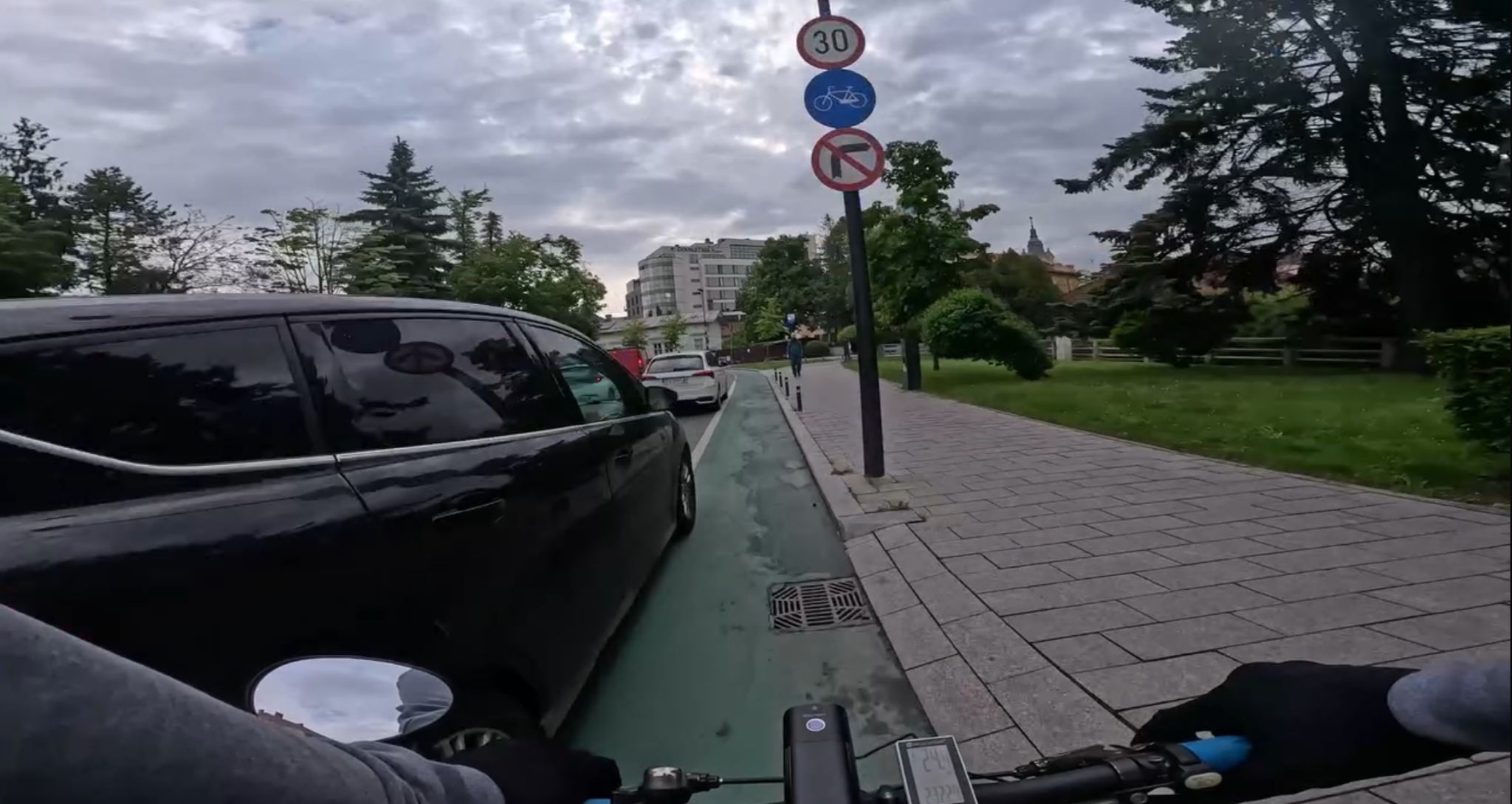 La un pas de tragedie pe pista de biciclete din Cluj: o șoferiță a „tăiat” colțul drumului și a pătruns periculos pe banda dedicată, forțând un biciclist să tragă brusc de ghidon ca să-și salveze viața