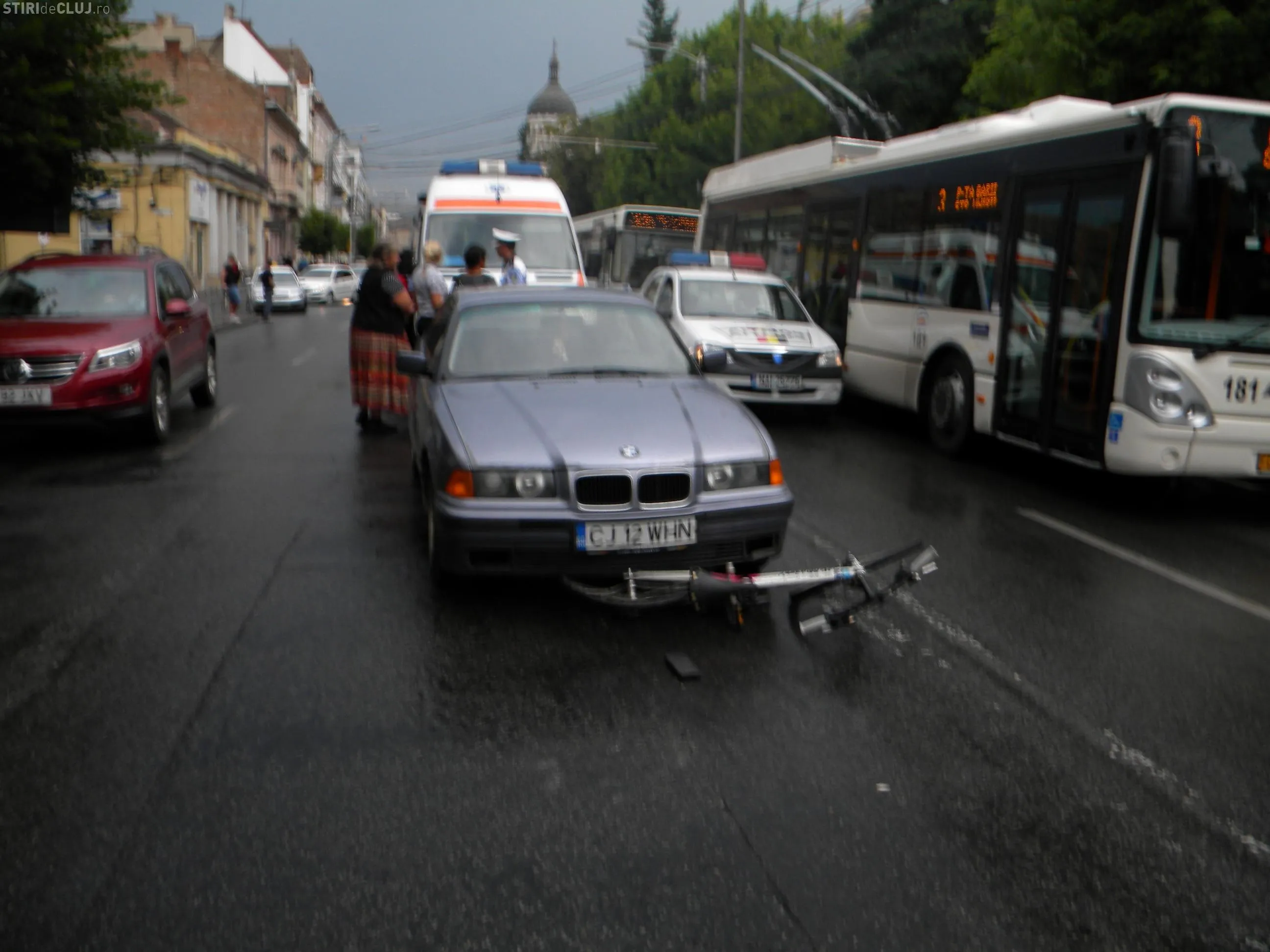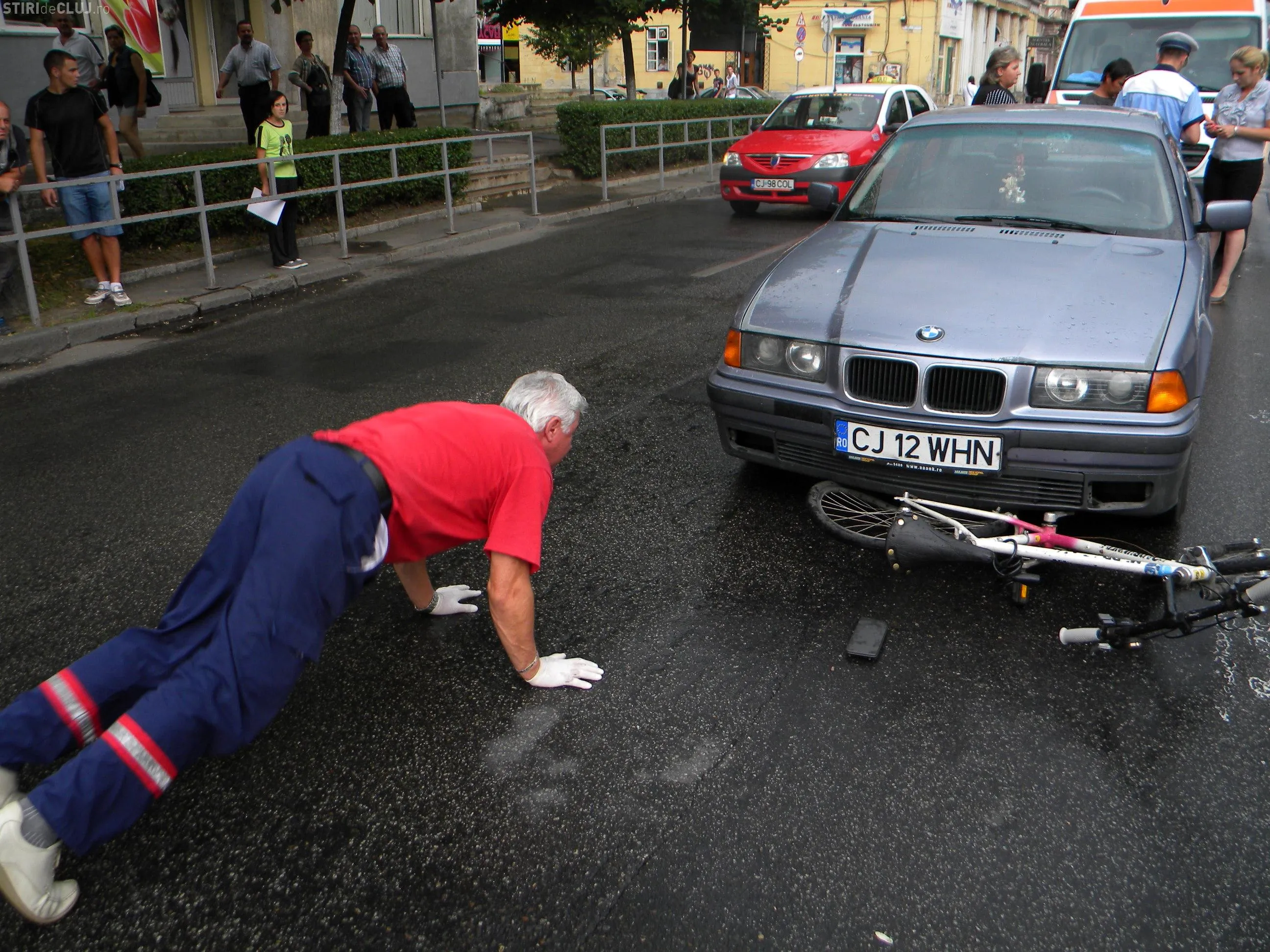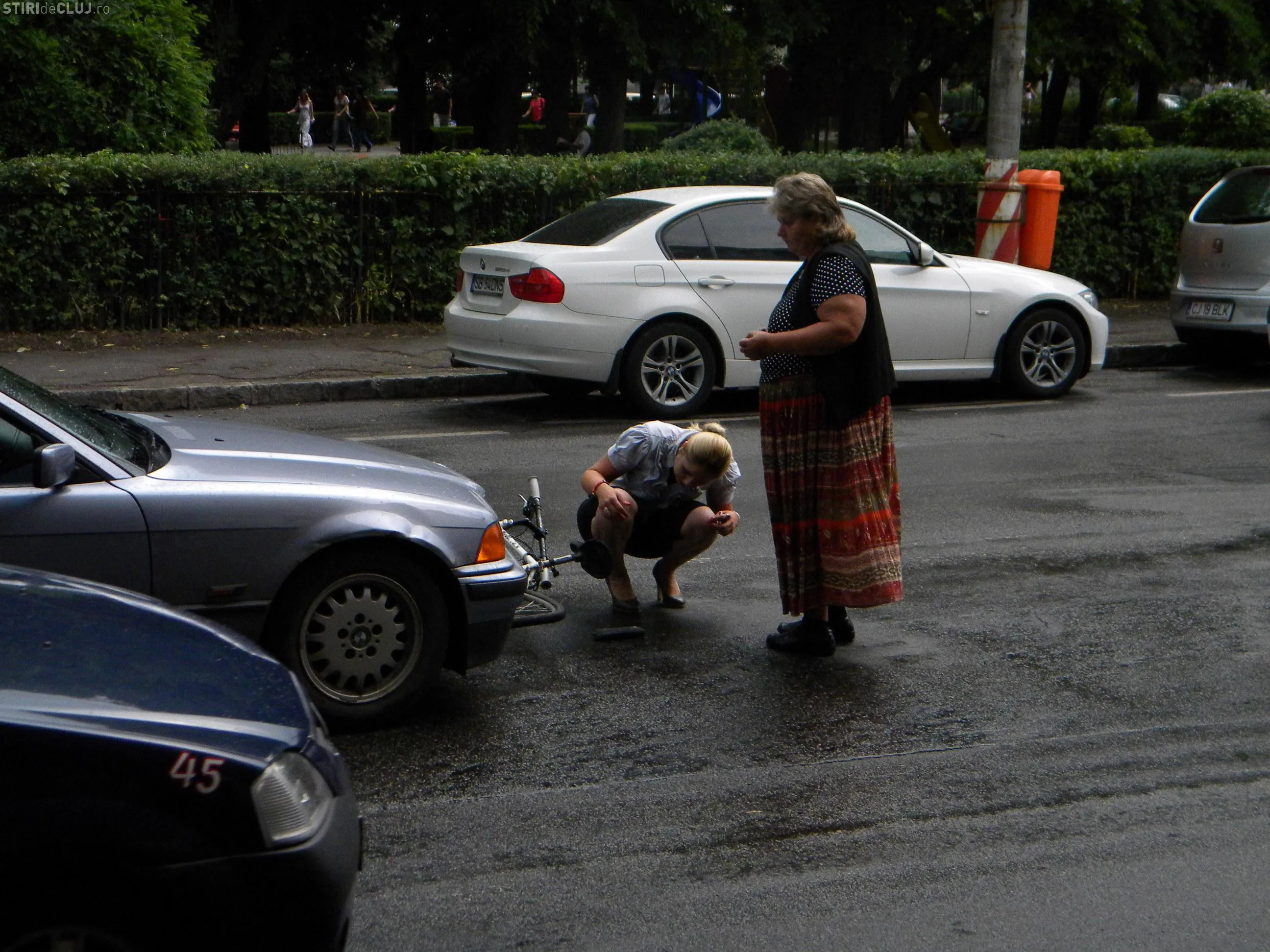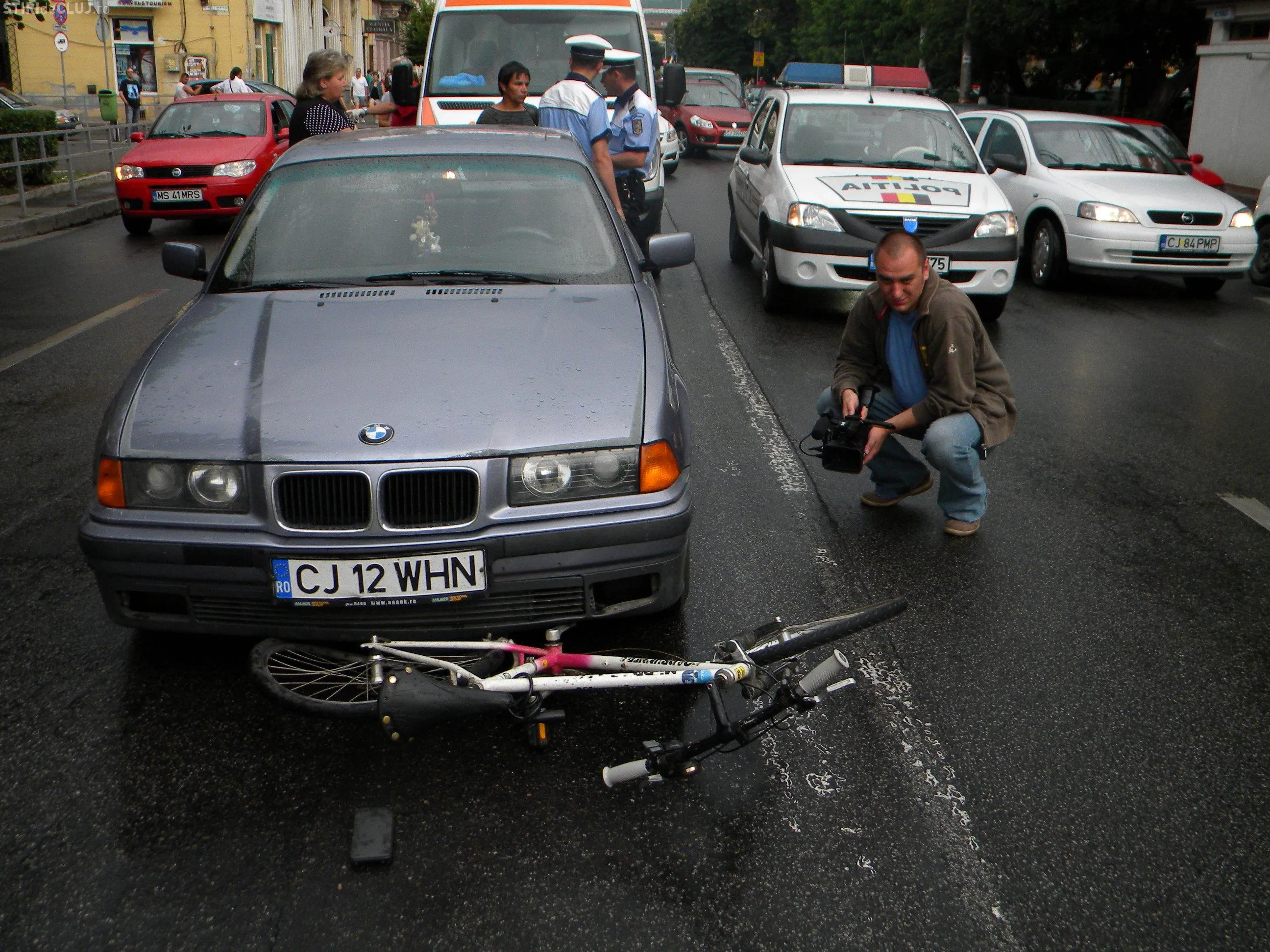 Biciclist spaniol, accidentat in Piata Stefan cel Mare de o soferita VIDEO si FOTO