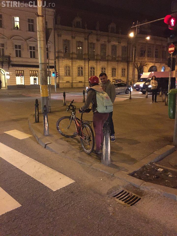 ”Acest sofer a lovit o biciclista pe trecerea de pietoni, din fata hotelului Melody! In timp ce victima zacea lata pe zebra, soferul o interoga de sanatate prin geamul intredeschis al masinii! Fata, in stare de soc vorbea exclusiv in limba engleza, fapt care a ingreunat si mai mult dialogul dintre cei doi! Politia???”, a relatat pe Facebook Ala Ana Strânceană, o fostă jurnalistă din Cluj.