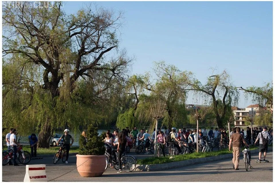 Participanții la acțiune cer pietonalizarea aleii din jurul lacului, unde să nu mai aibă acces autoturismele.