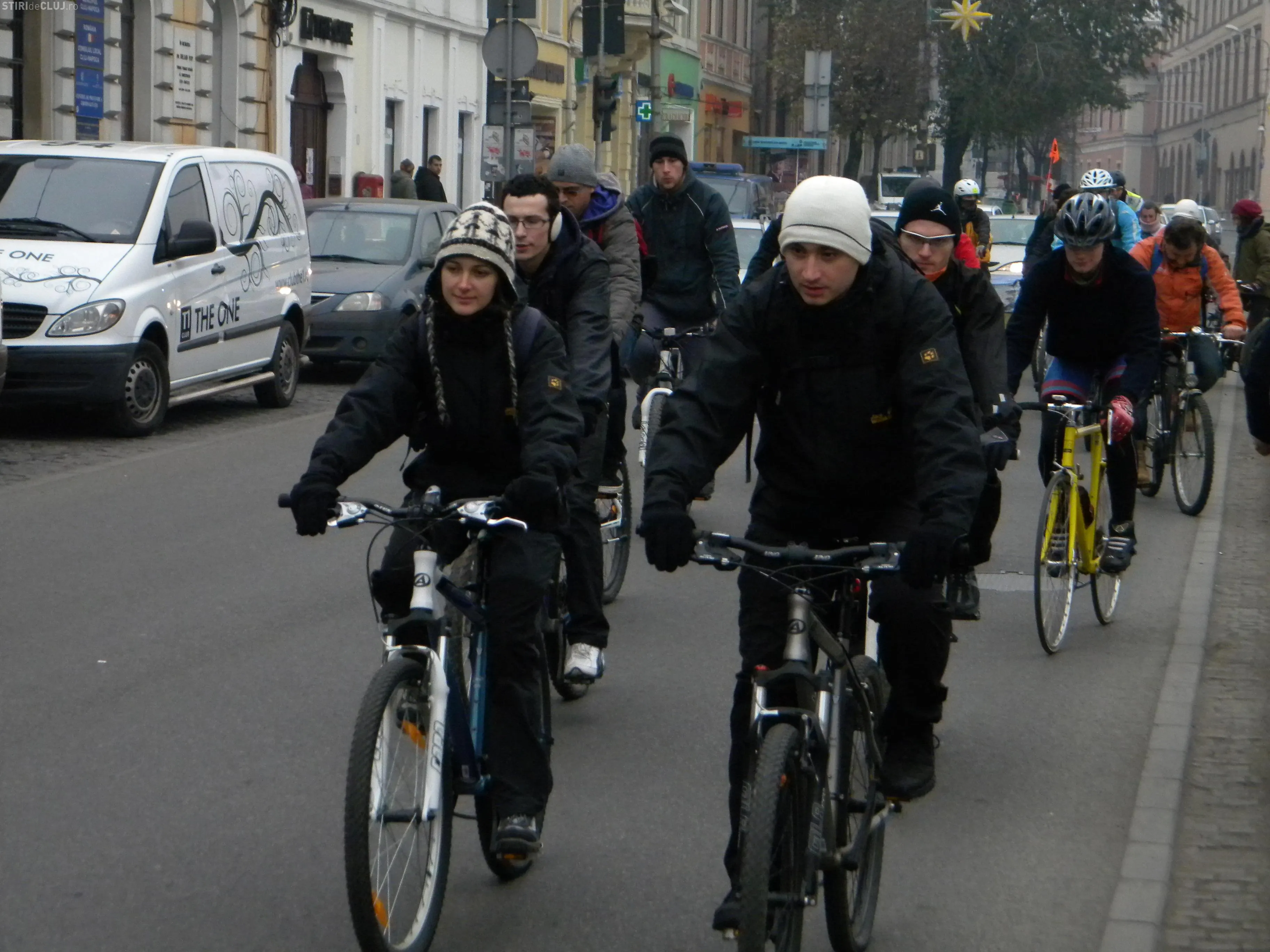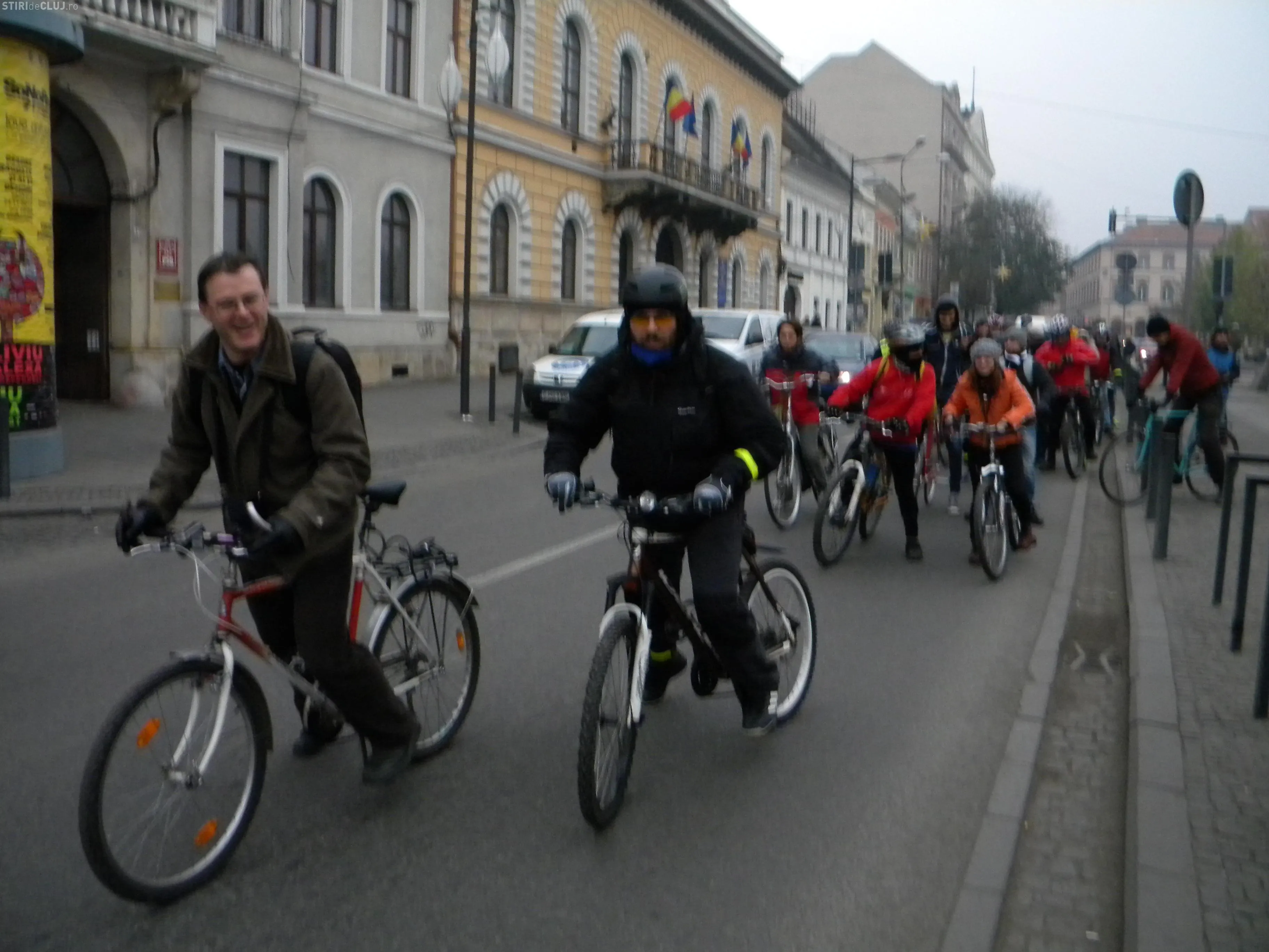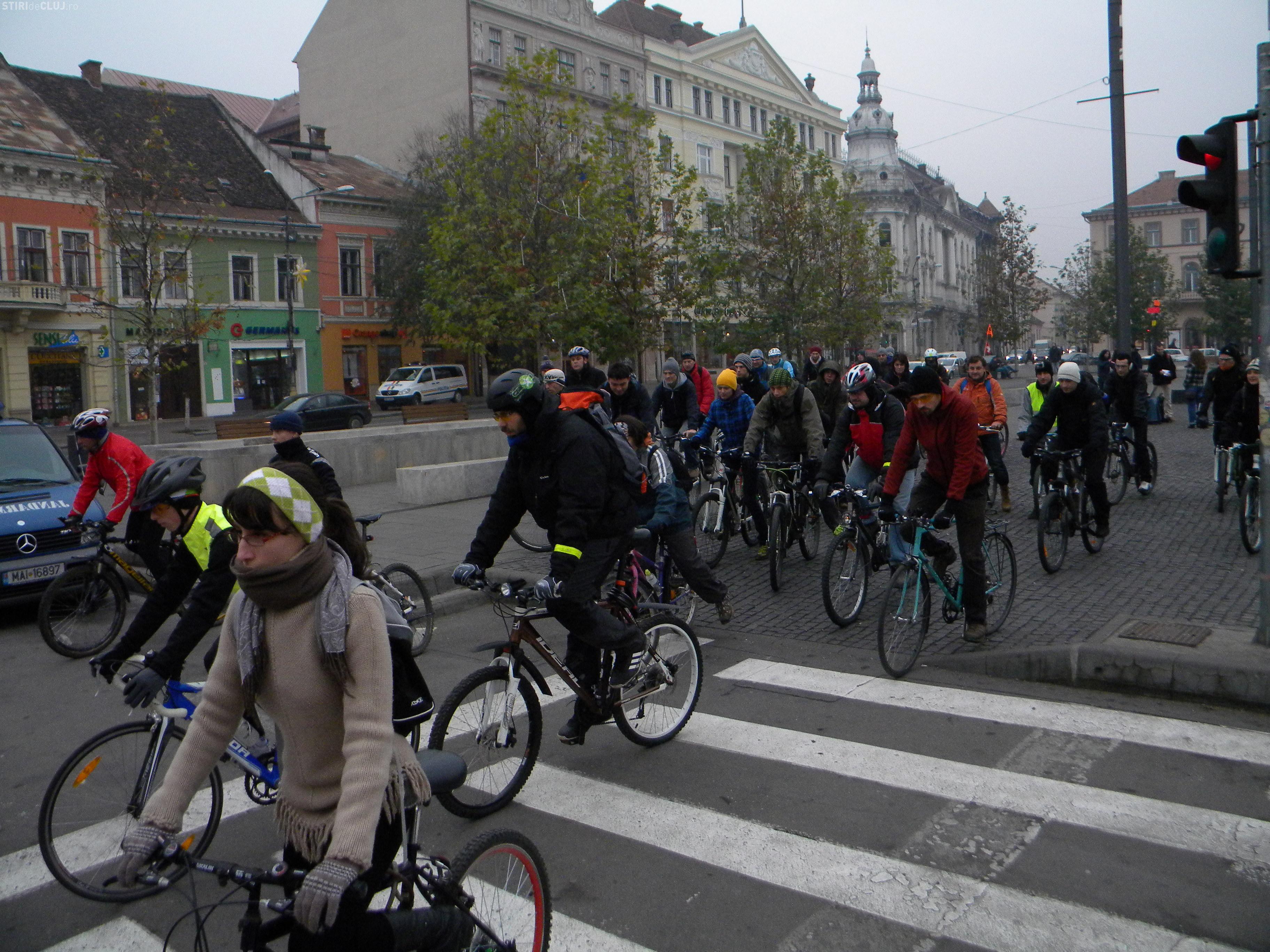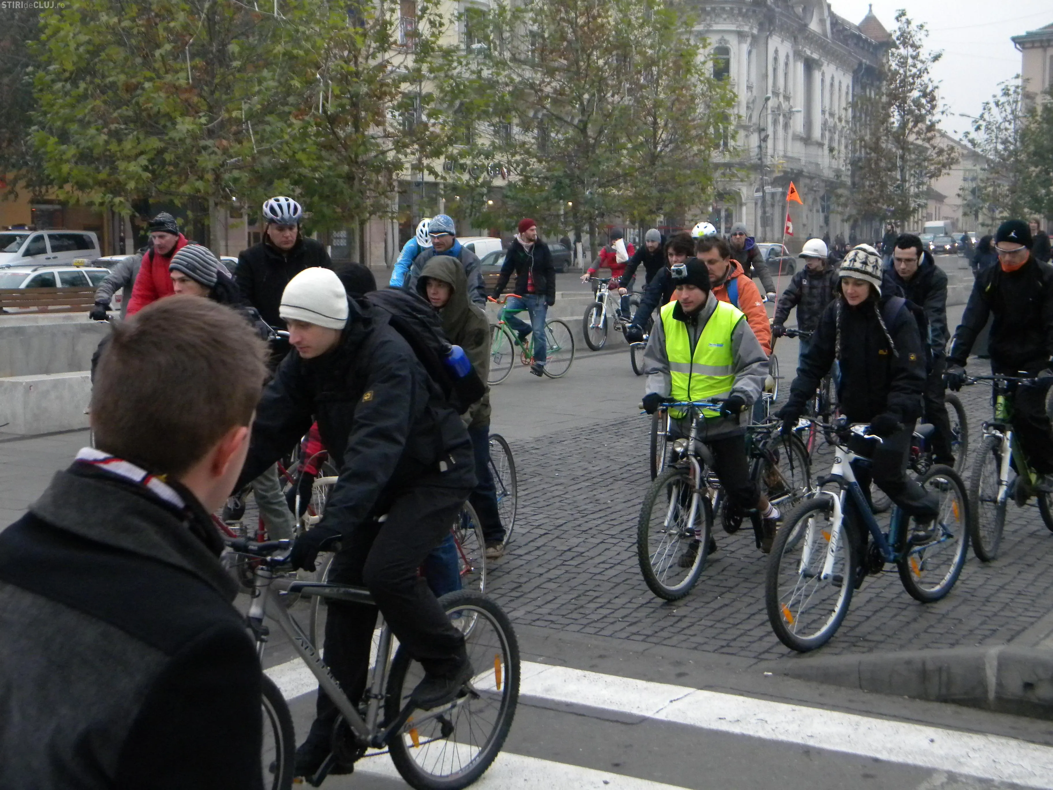 Bicicliștii clujeni au pornit într-un marș prin centrul orașului, sâmbătă, 24 noiembrie, în jurul orei 15.30.