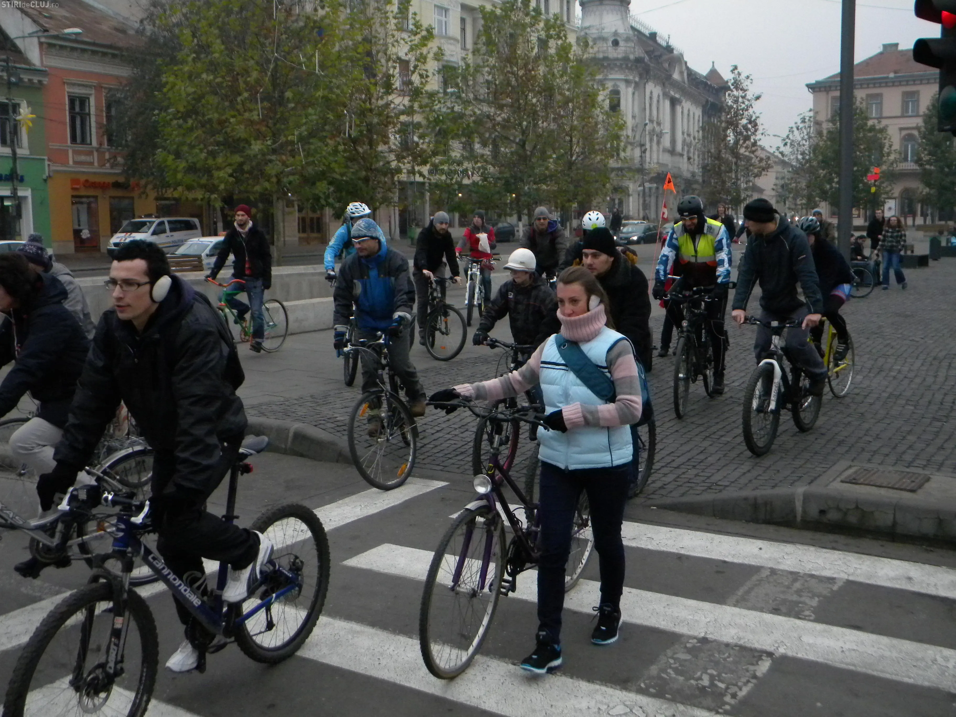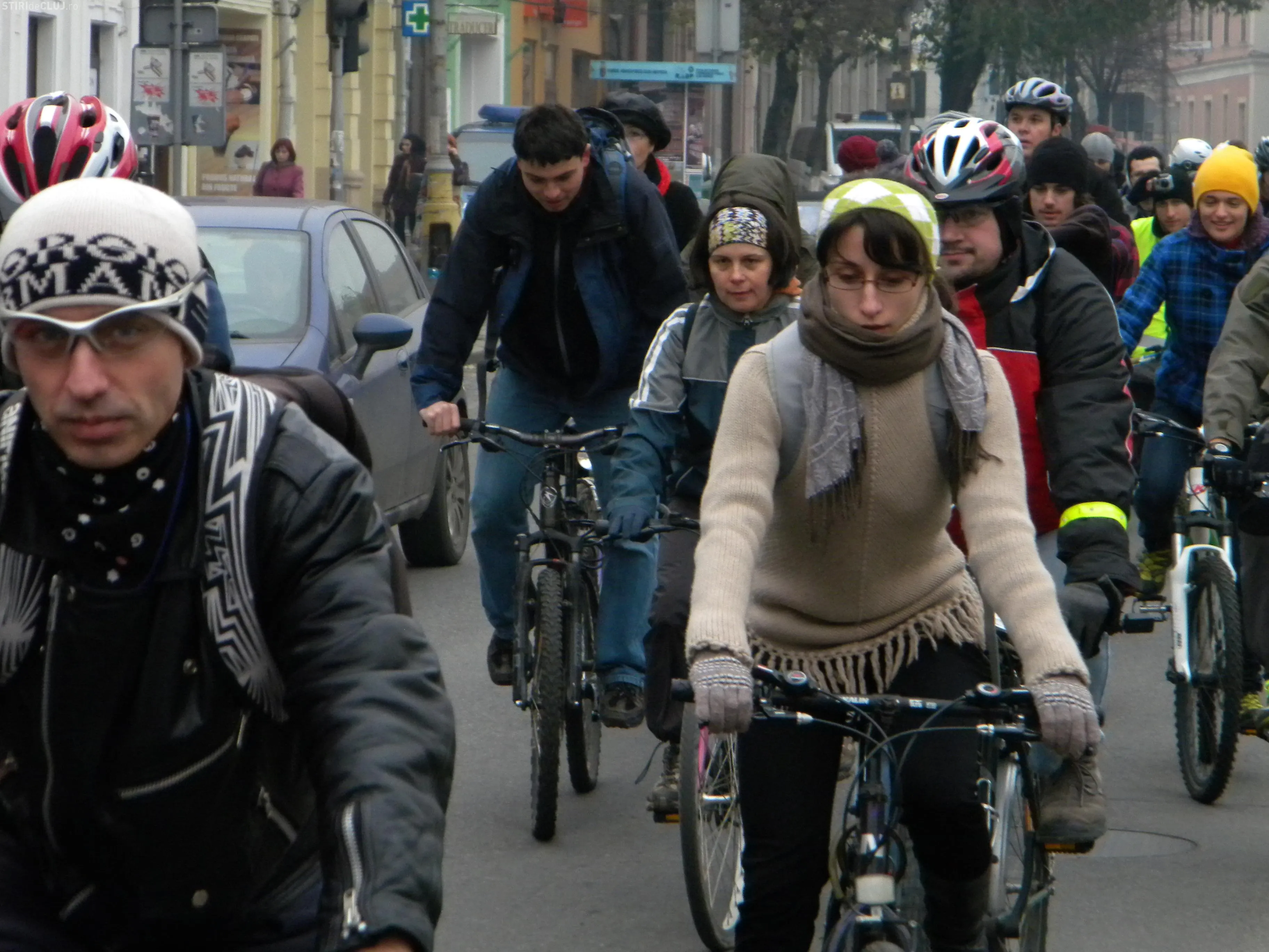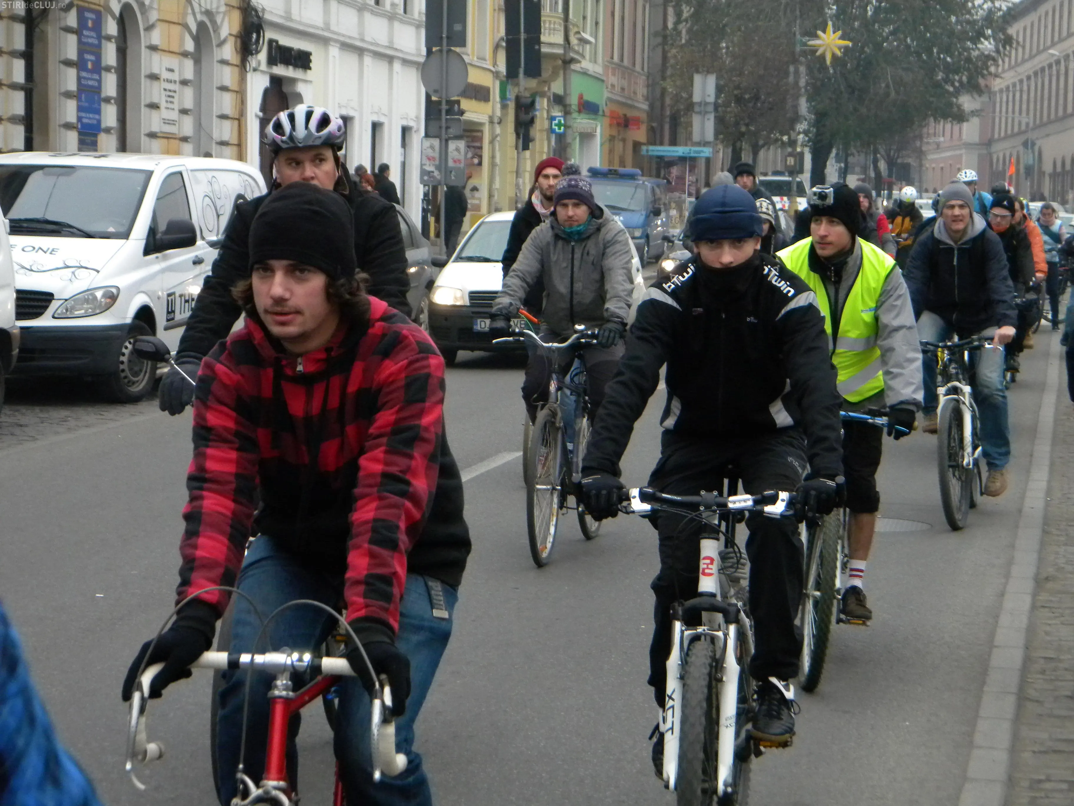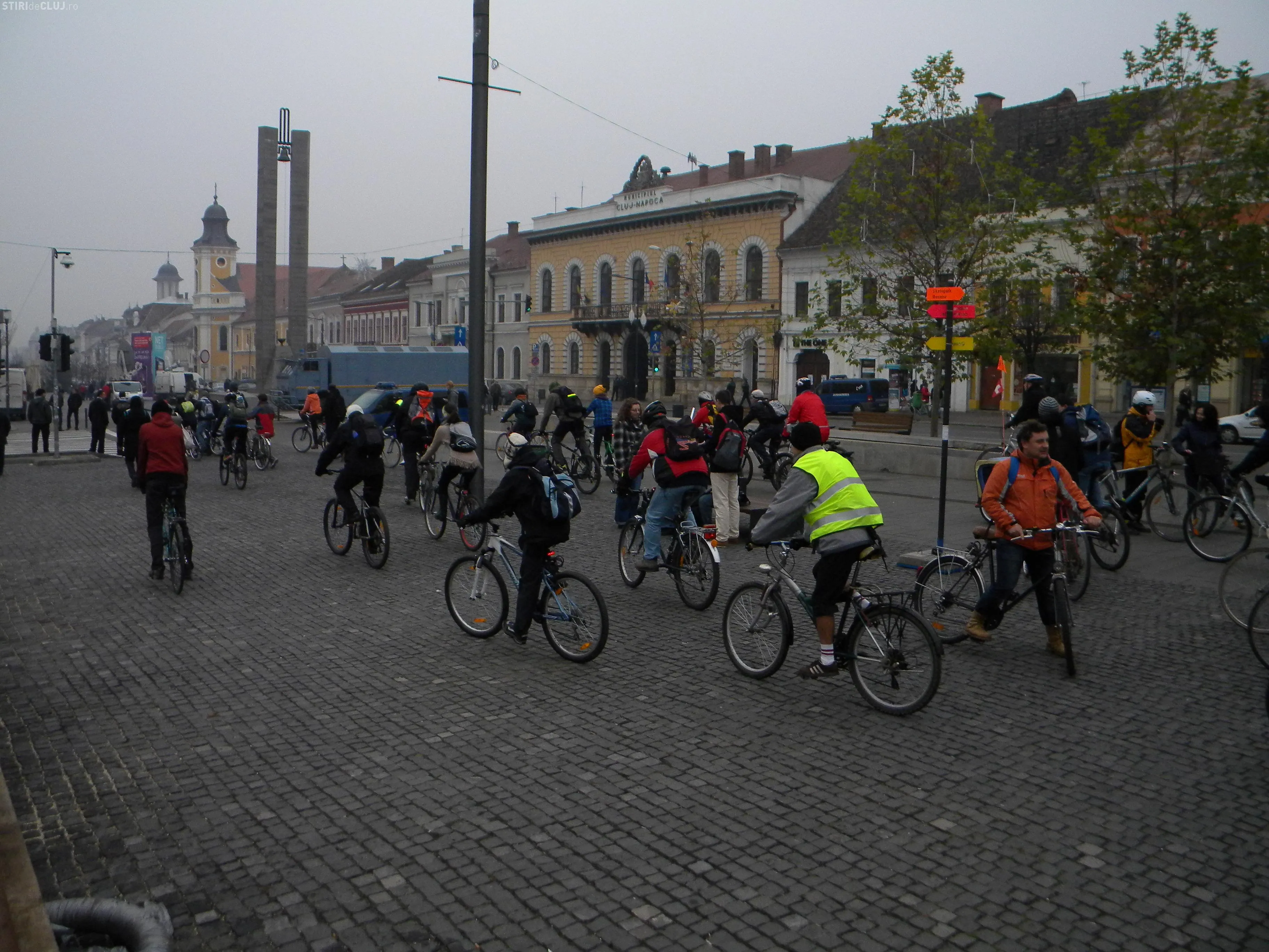 Bicicliștii clujeni au pornit într-un marș prin centrul orașului, sâmbătă, 24 noiembrie, în jurul orei 15.30.