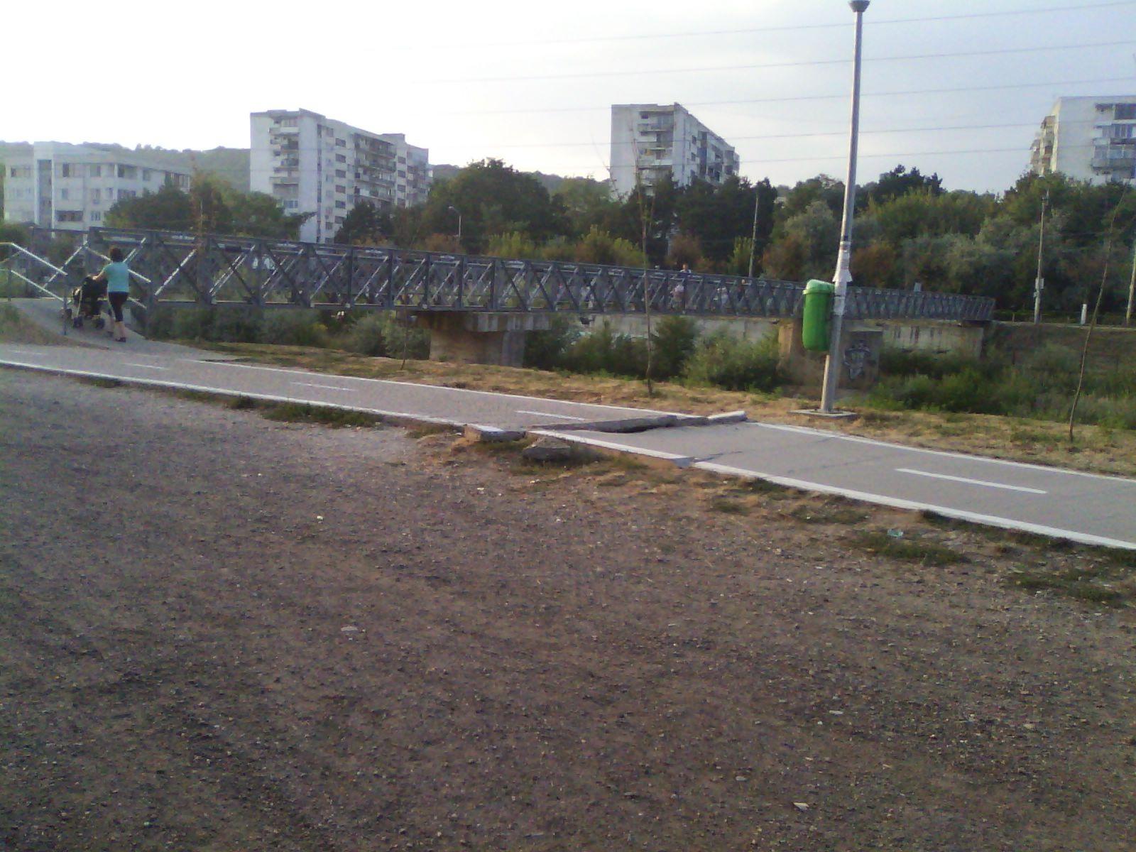 Bicicliștii reclamă deja de câteva zile faptul că pista de biciclete de la Sala Sporturilor a crăpat, dar nimeni nu face nimic.