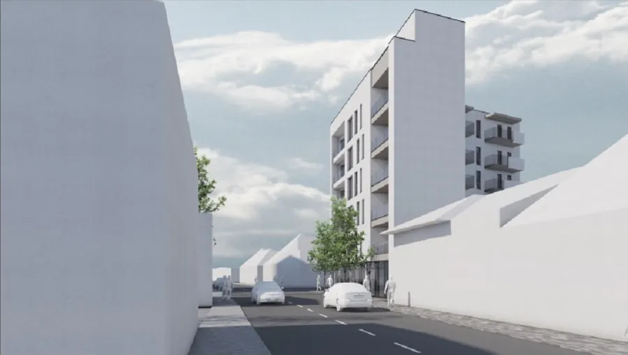 Bloc cu 11 apartamente înghesuit la Cluj pe 550 de metri pătrați. E atât de îngust că nu poate fi mobilat