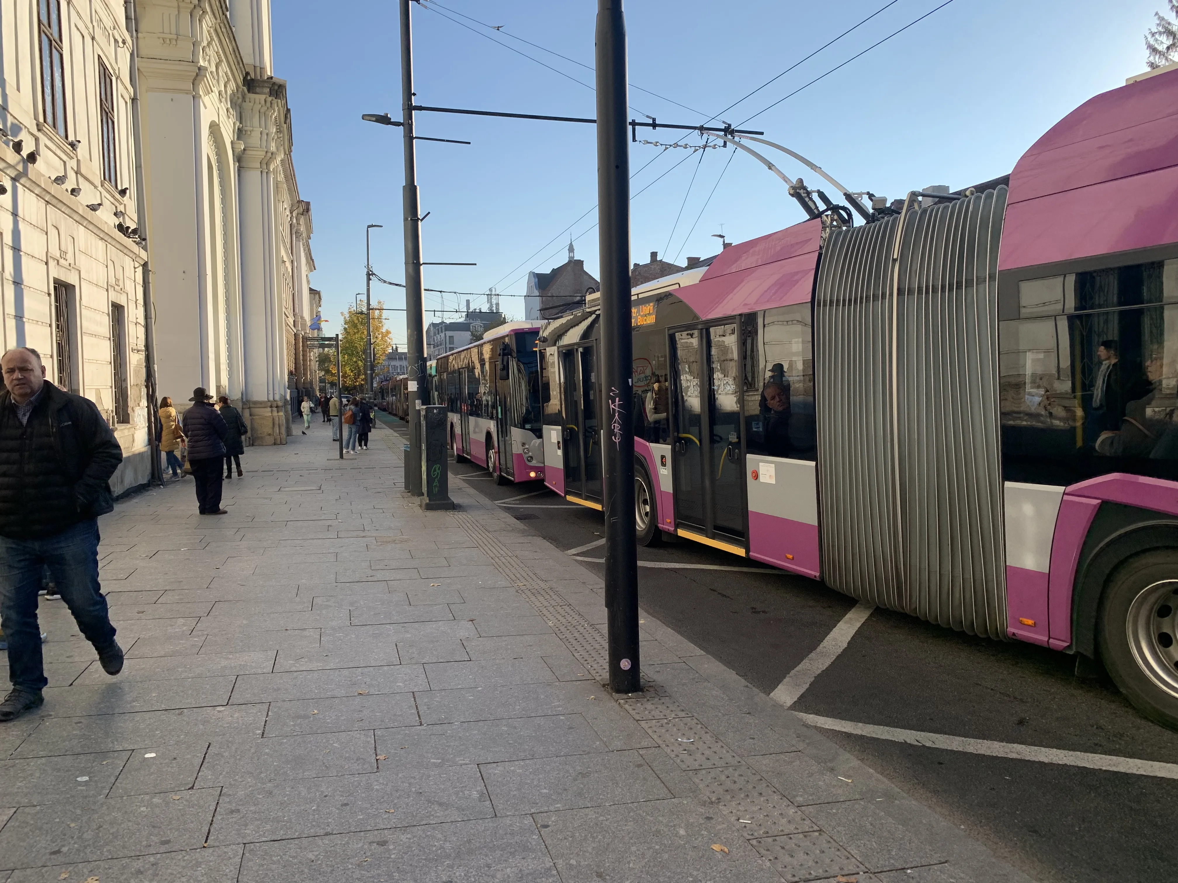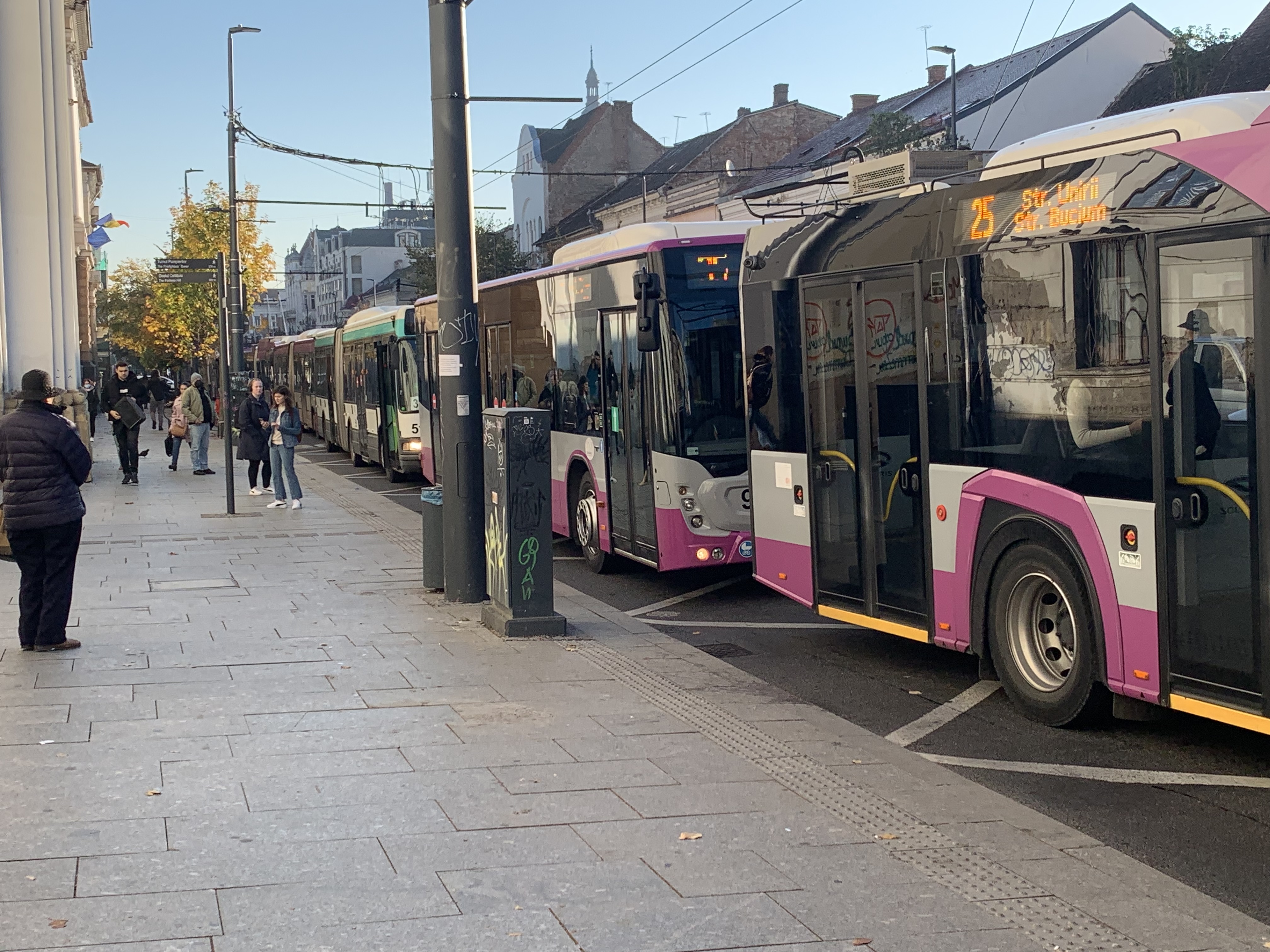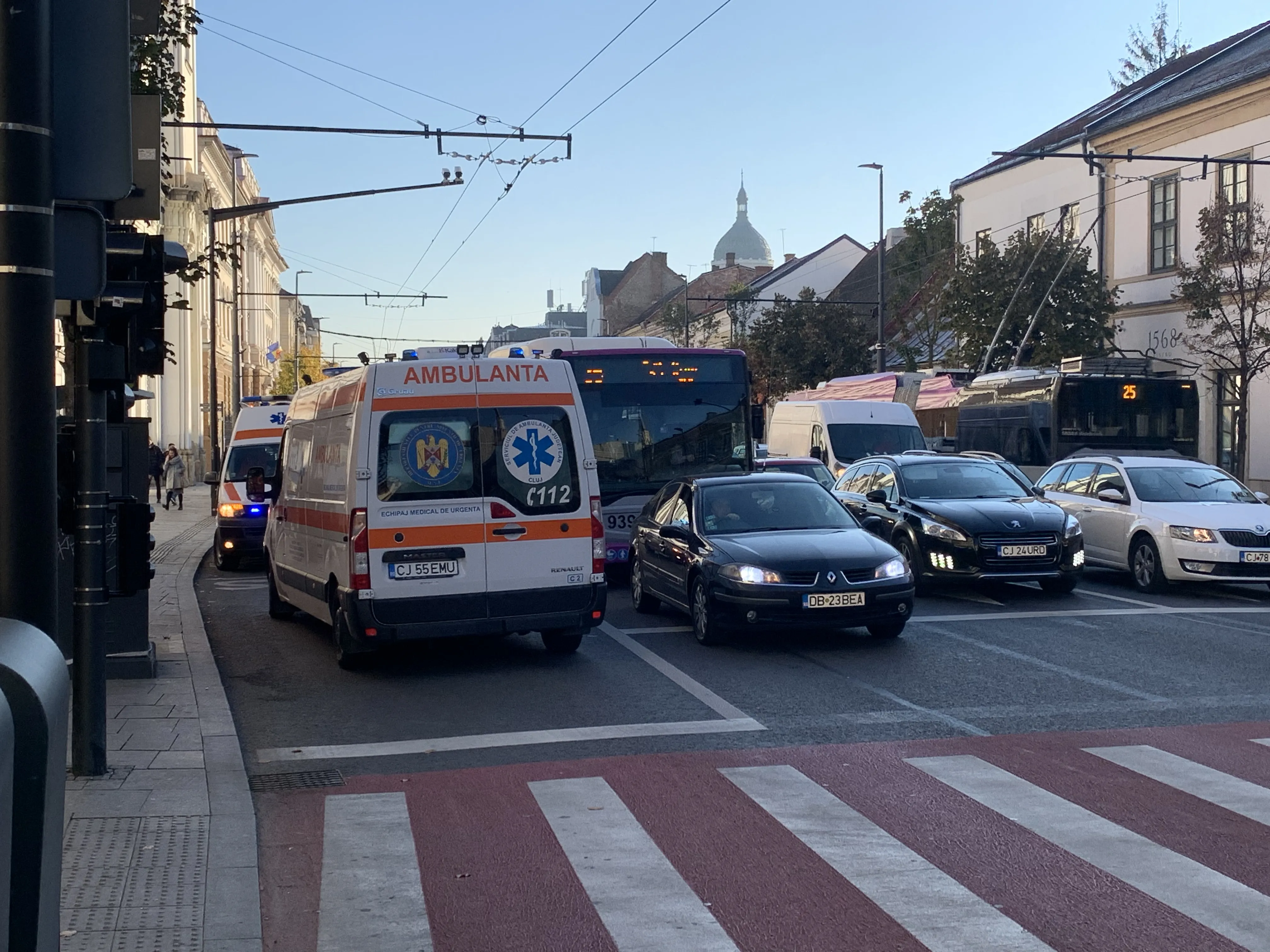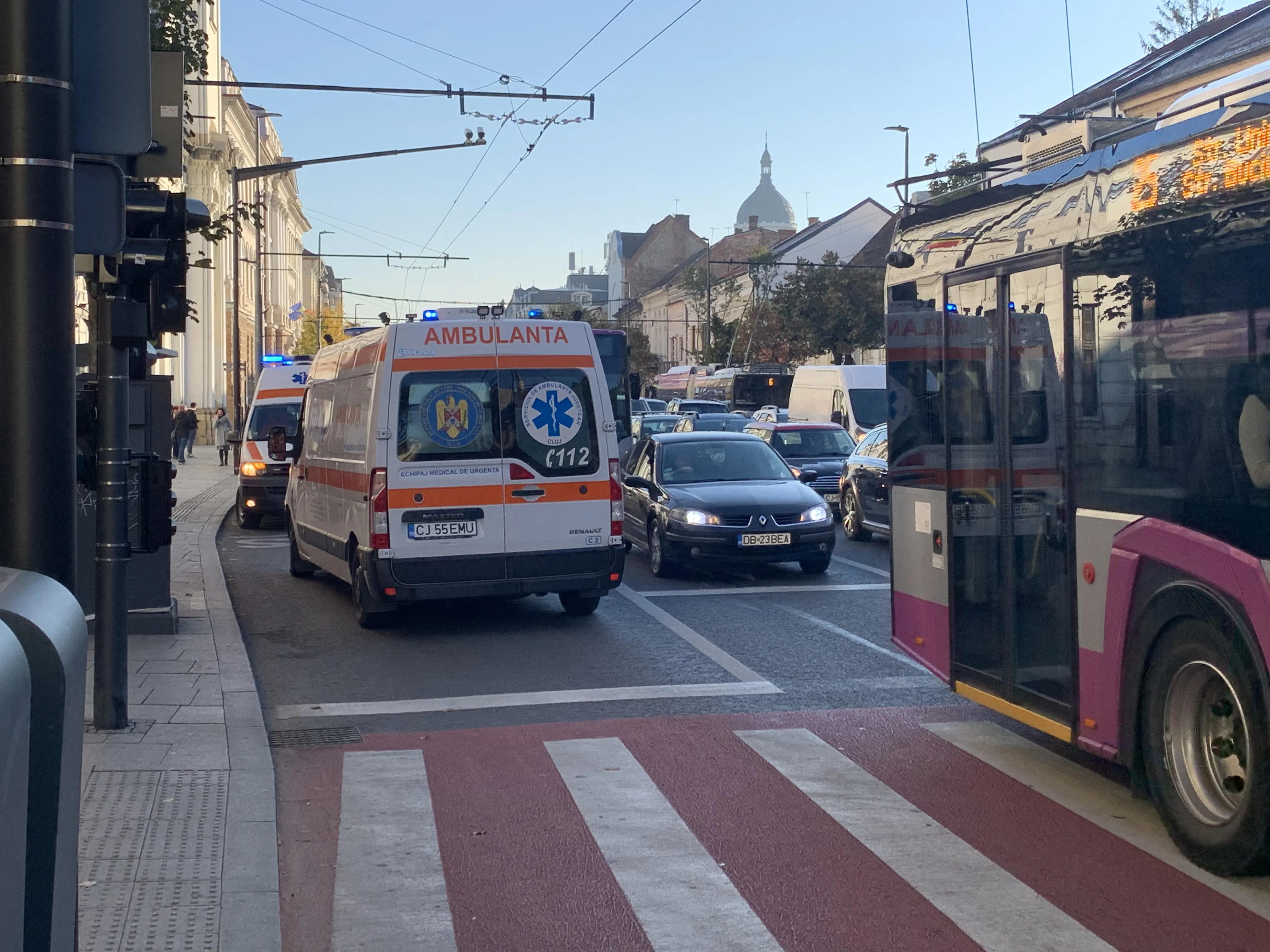 Blocaj total în centrul Clujului, pe banda dedicată pentru transportul în comun - FOTO