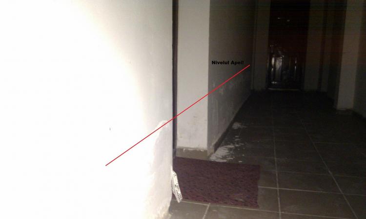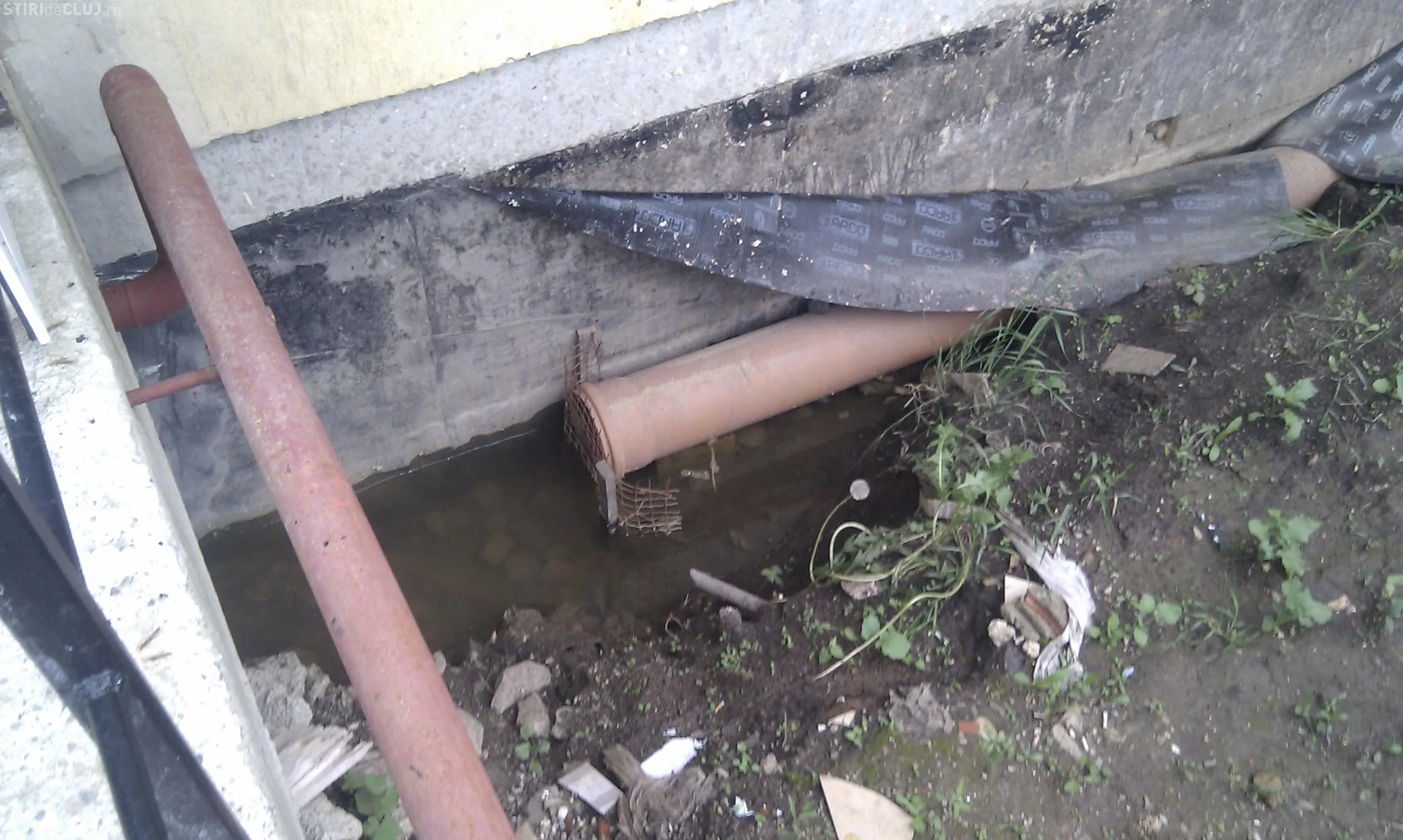 Blocuri rezidentiale din Baciu, inundate din cauza lucrarilor proaste! Constructorul a "uitat" o barna de la schela in bloc si pe acolo intra apa