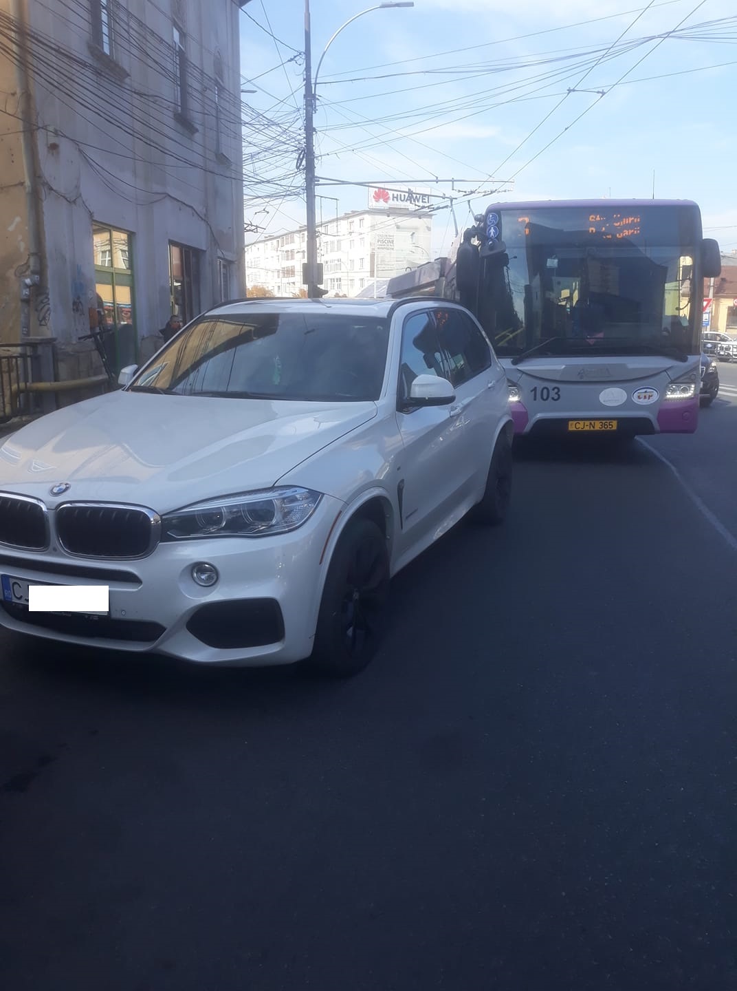 ”Blondă” cu BMW blochează traficul în Piața Mihai Viteazu - FOTO