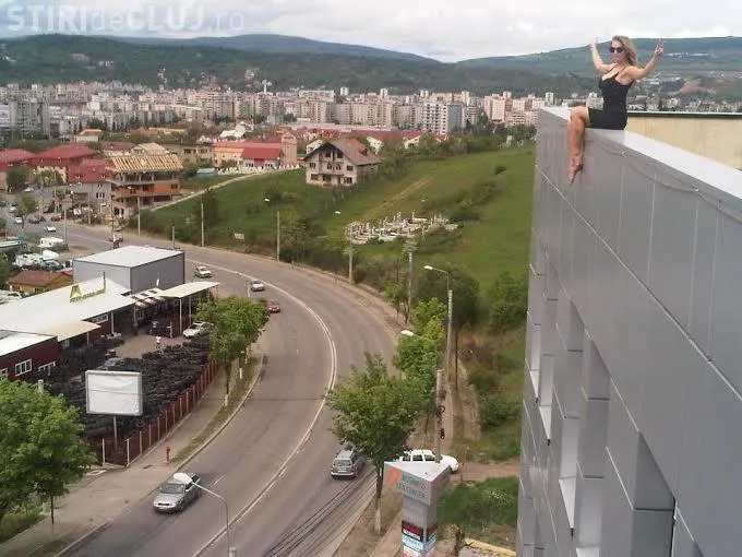 O fotografie postată pe Instagram o prezintă o acoperișul unei clădiri de pe varianta Zorilor - Mănăștur, șezând pe margine cu picioarele în exterior.