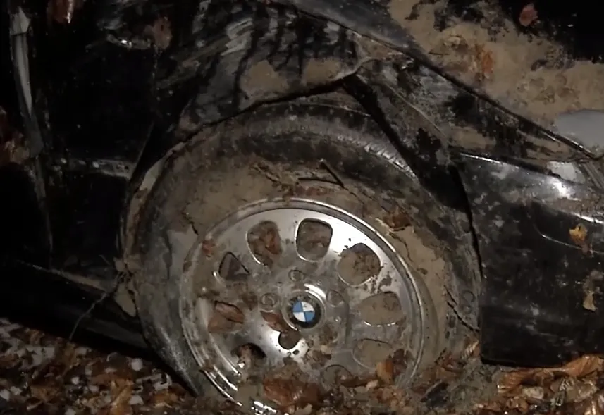 BMW cu cauciucuri de vară a plonjat până în pădurea de pe strada Sfântul Ion - VIDEO