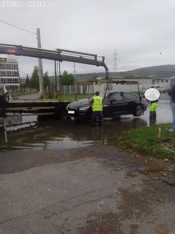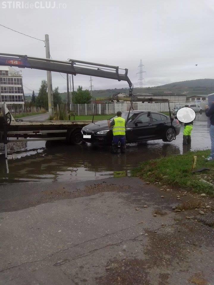BMW de lux scos cu macaraua din canalizarea de la Florești - FOTO