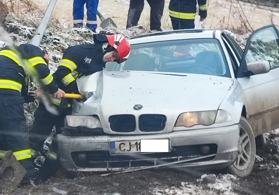 BMW ”eșuat” pe marginea drumului în Popești, pe drumul spre Cluj-Napoca - FOTO