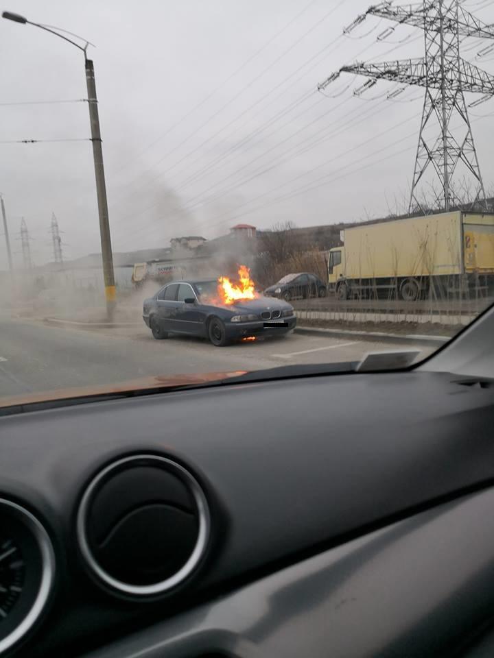 BMW în flăcări pe Bulevardul Muncii FOTO