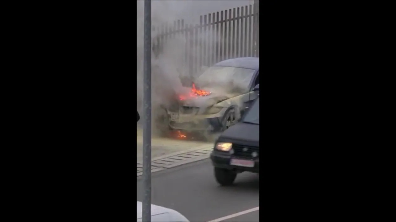 BMW în flăcări pe Calea Baciului, lângă Ruttrans - VIDEO