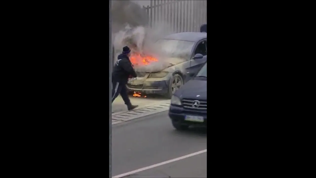 Șoferul și mai mulți conducători auto au încercat să stingă focul izbucnit la motor, dar fără niciun succes, pentru că flăcările au cuprins capota și tot motorul.