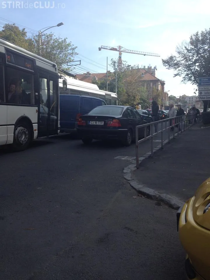 Șoferul unui BMW a blocat o bandă de circulație în centrul Clujului.