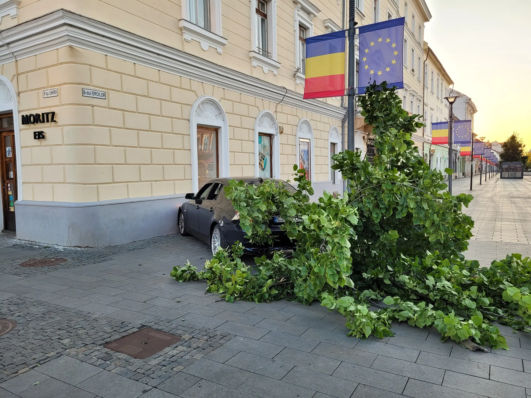 Incidentul a avut loc vineri dimineața, în jurul orei 05:00. Mașina a ieșit de pe stradă, a rupt un copac de pe aleea pietonală și s-a oprit în zidul clădirii de la Moritz.
