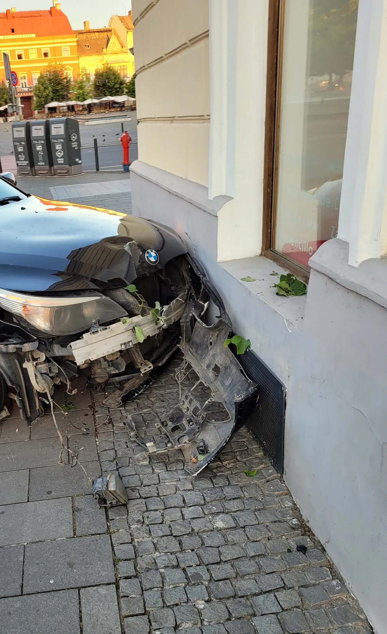 BMW -ul, care a intrat vineri pe pietonala de pe Eroilor, a rupt un copac și apoi s-a oprit în clădire, a fost condus de femeie.