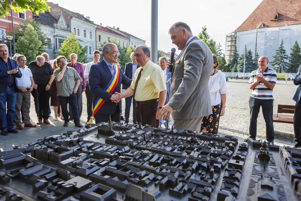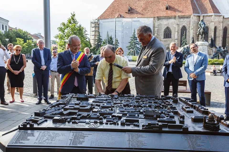 ”Am participat astăzi la dezvelirea machetei de bronz a zonei centrale a municipiului, un nou punct de atracție pentru clujeni și turiști, pe care sunt reprezentate Piața Unirii, Piața Avram Iancu și Piața Cipariu și toate străzile adiacente din acest perimetru.