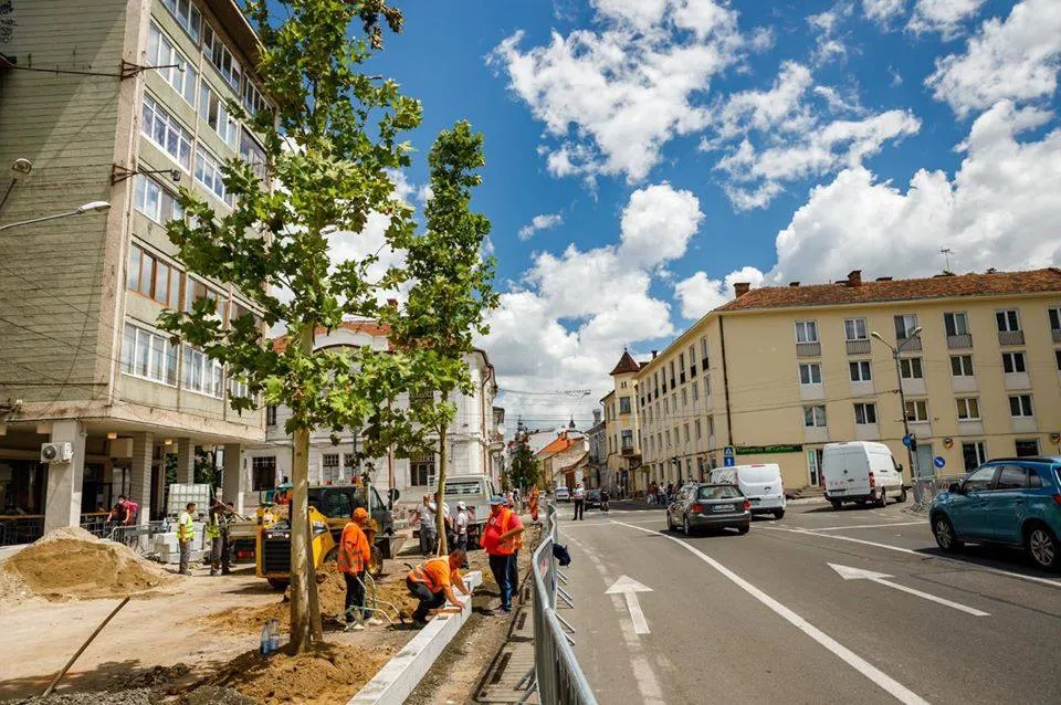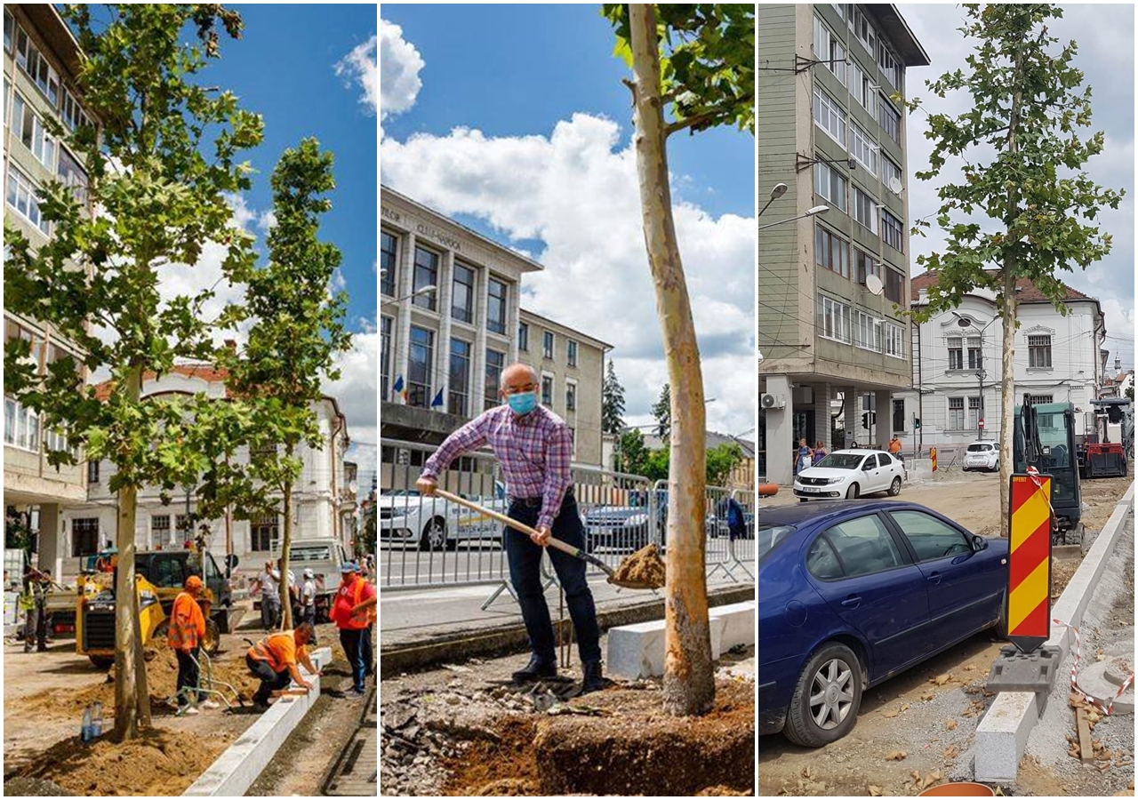 "S-a luat decizia de către arhitectul proiectului sa fie înlocuiți cu alții cu coroana mai bogata, să poata face mai multă umbră. Sa nu asteptam sa creasca. Se planteaza Platanus acerifolia. Diferentele sunt date de taierile de formare ale coronamentului. Cei din aliniamentele stradale au forma columnara, iar cei prevazuti pentru zona terase au o forma evazata, care va permite umbrirea zonei intr-o perioada mai scurta de timp”, a spus Poruțiu.