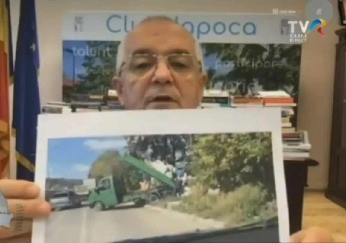 Primarul Emil Boc a prezentat un caz de descărca de deșeuri pe o stradă din Cluj-Napoca, de către un clujean care a fost amendat.
