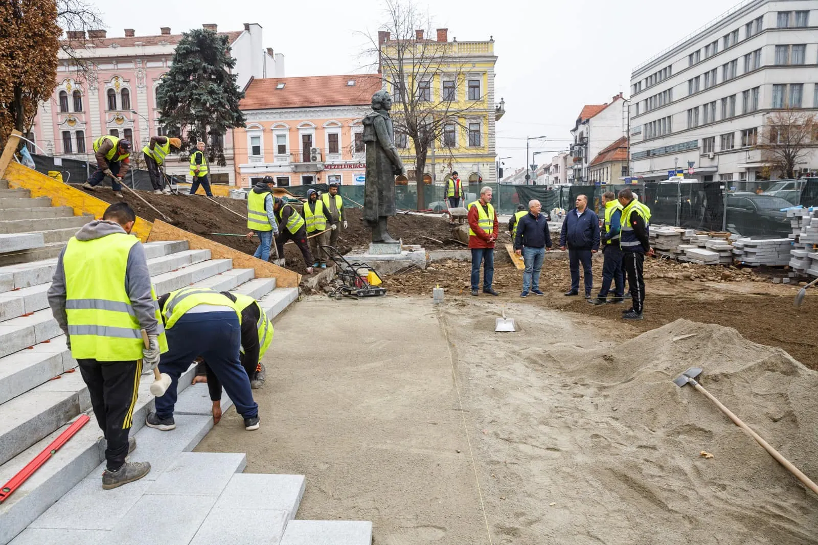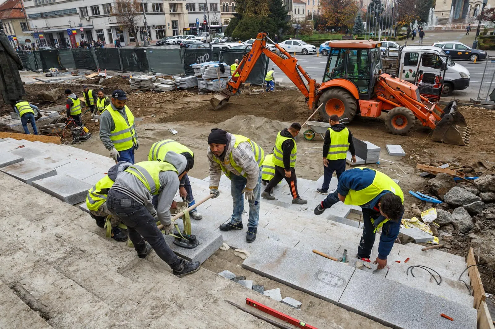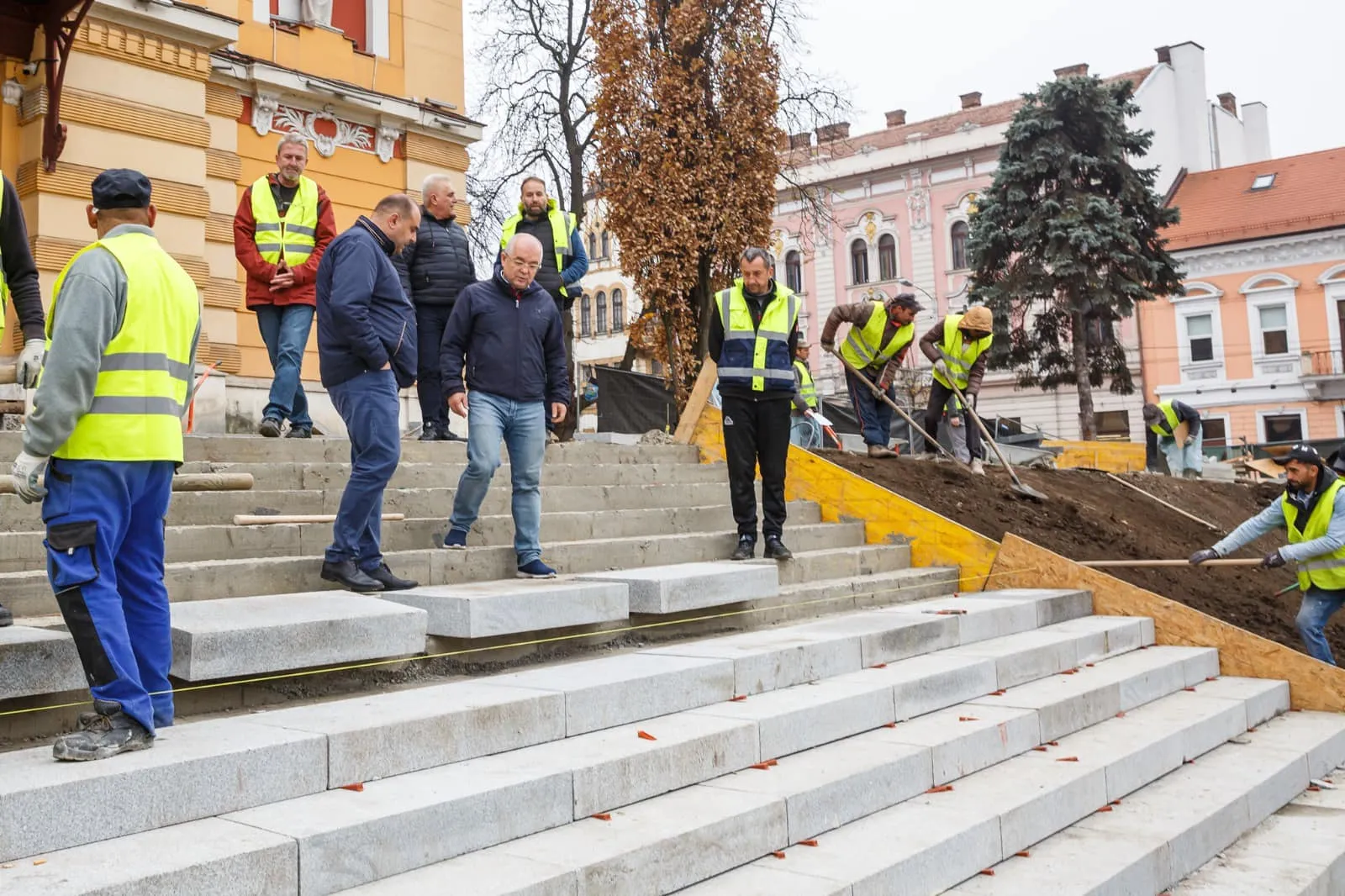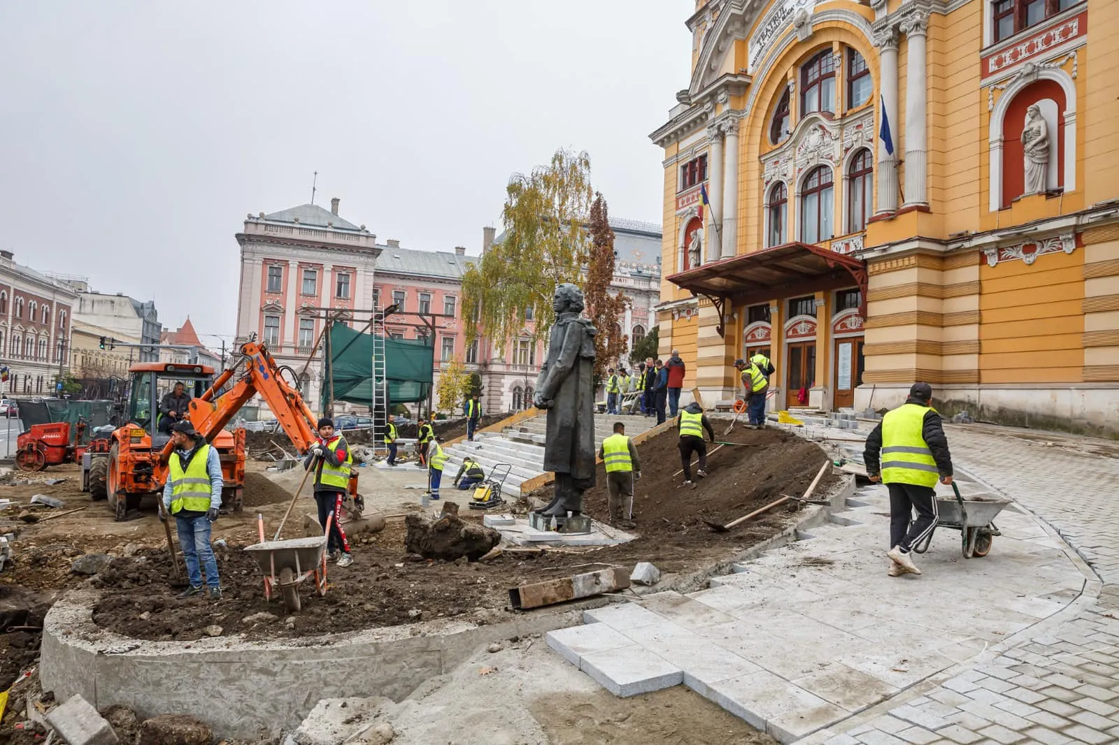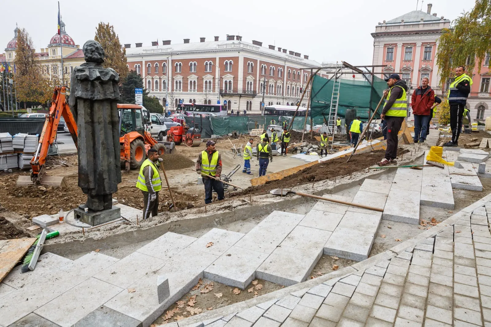 Primarul Emil Boc a vizitat vineri, 11 noiembrie, lucrările de la Parcul Operei și esplanada din fața Teatrului Național, unde vor avea loc focurile de artificii de 1 decembrie.