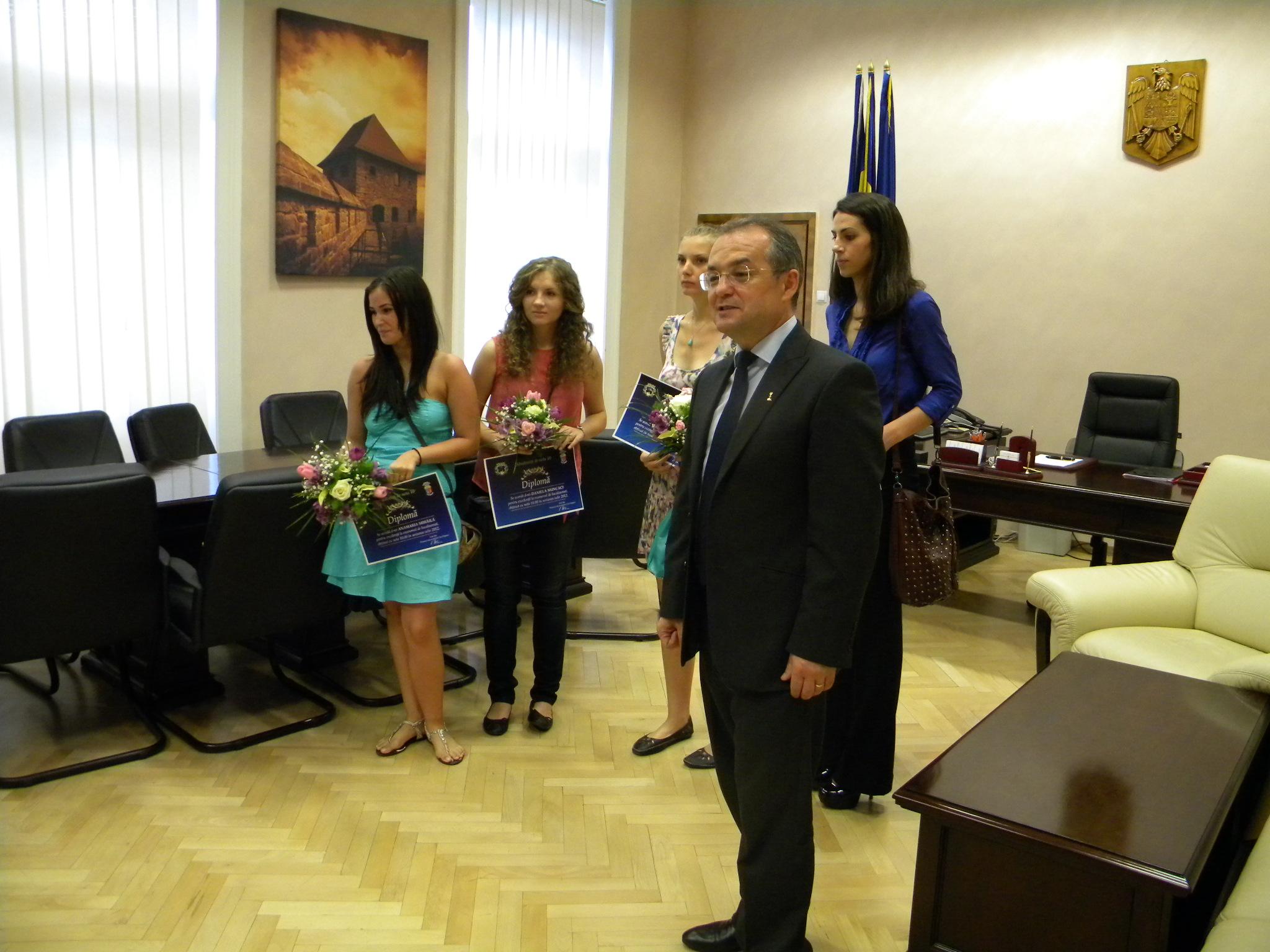 Primarul Clujului le-a premiat pe cele patru eleve din oraş care au terminat cu media zece examenul de Bacalaureat din acest an.