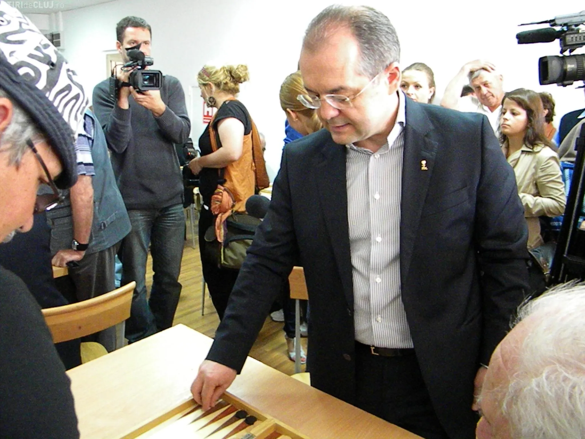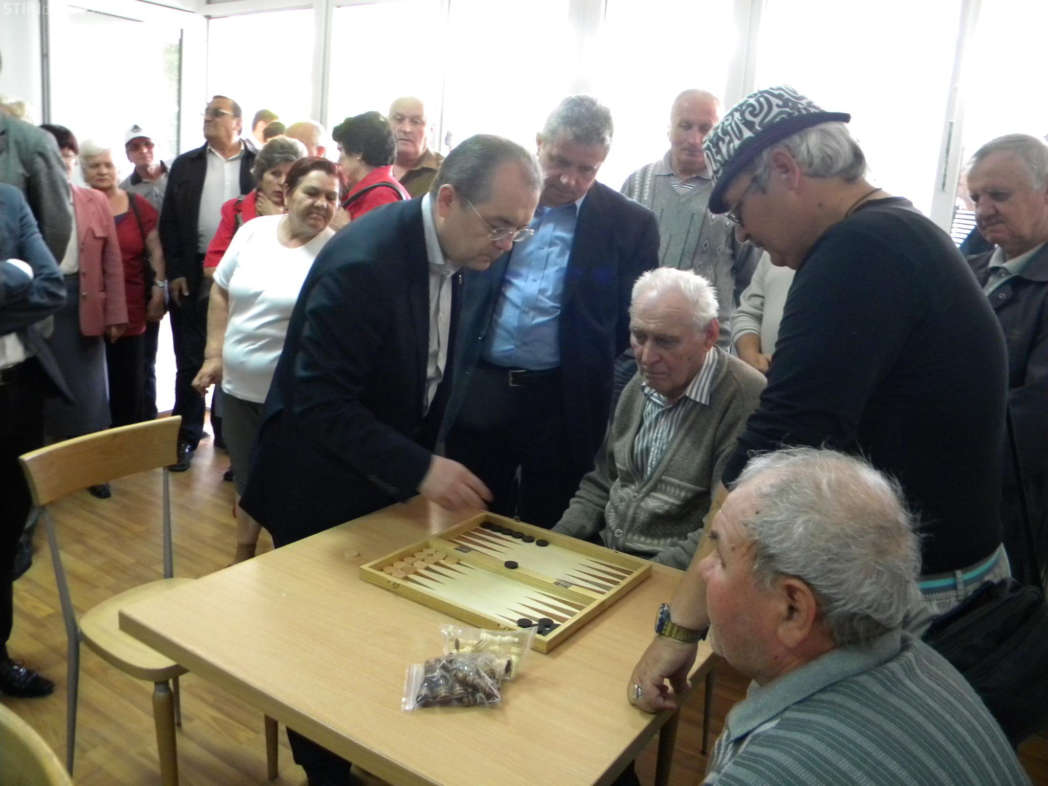 Emil Boc a participat de la ora 11.30 la inaugurarea unui club al pensionarilor din Grigorescu, unde a fost provocat la o partida de table.
