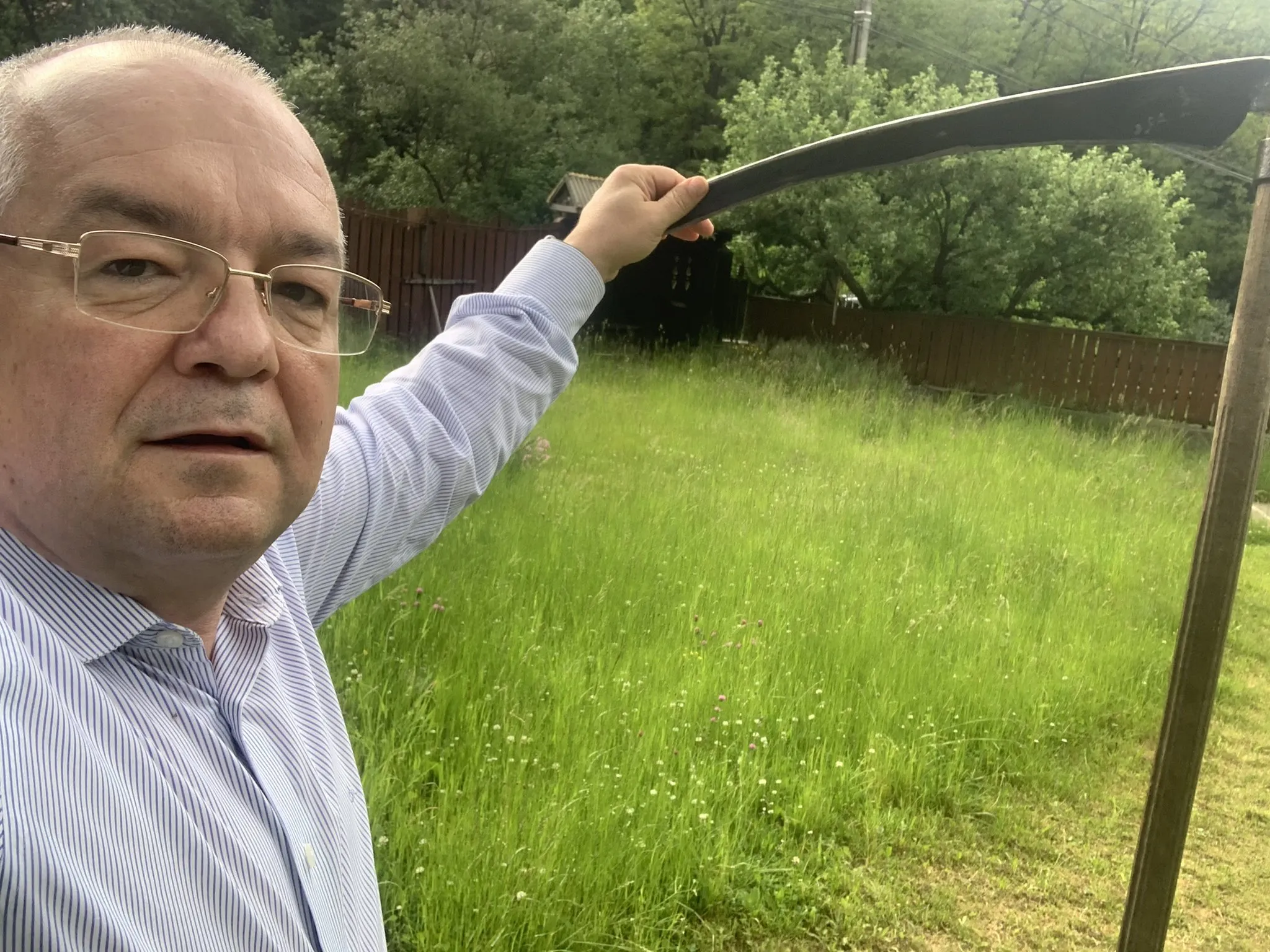 ”La coasă in curtea casei părintești! Cosaș “de moda veche”, dar mai sănătos și nepoluant decât cu coasa modernă!”, a transmis Emil Boc, pe Twitter.