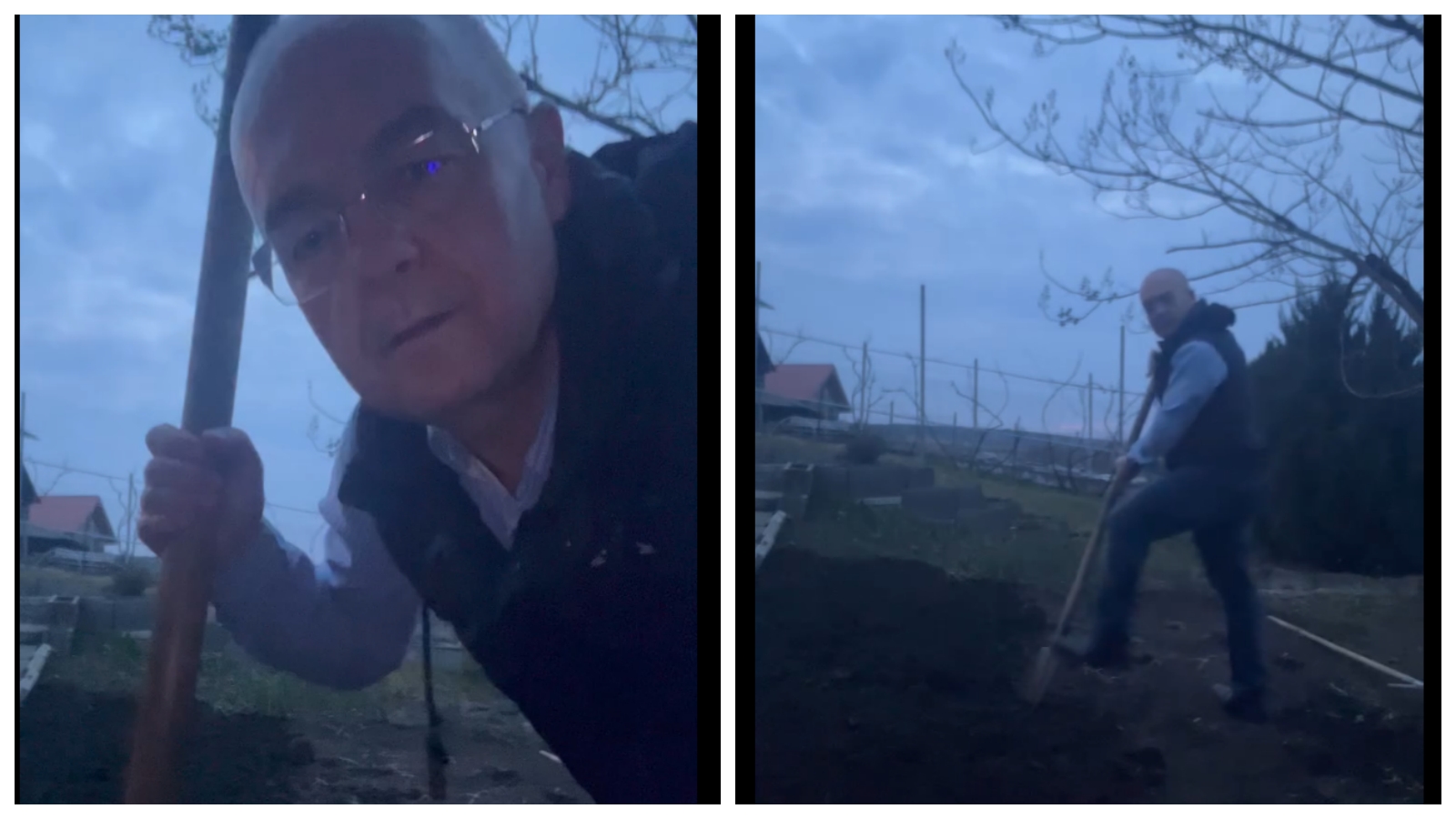 Boc s-a filmat la casa de la Câmpenești, în timp ce săpa răsadurile, la cămașă, în blugi și cu pantofi.