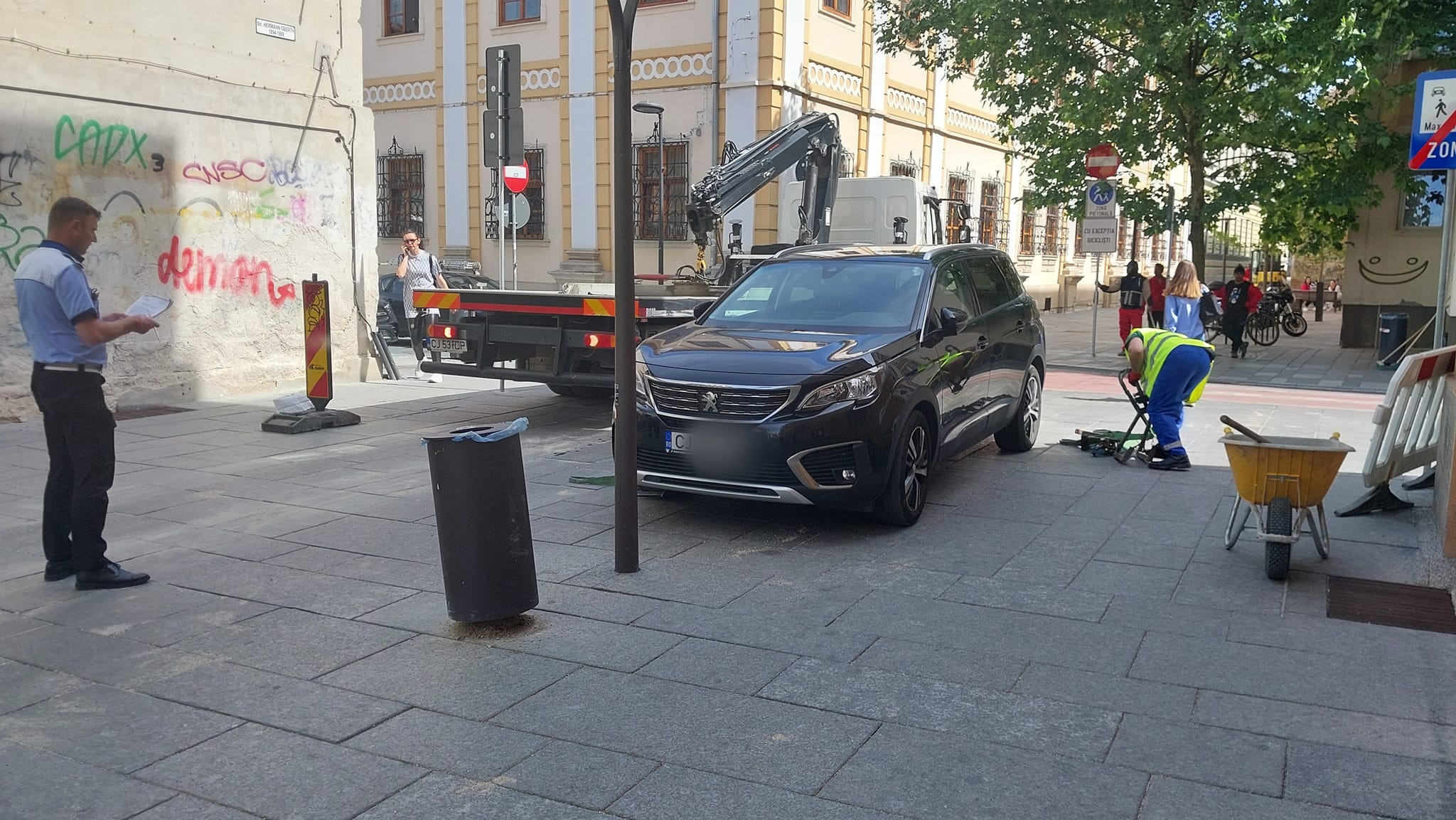 Bolid ridicat rapid de pe o stradă din centrul Clujului: „Oraș de 5 stele, nici pe trotuar nu te mai lasă să parchezi, huo”