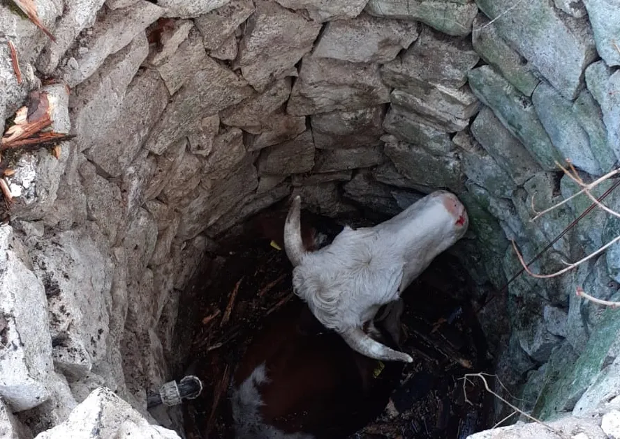 Pompierii din cadrul Detașamentului Huedin au intervenit pentru a salva o bovină, căzută într-o fântână, adâncă de aproximativ 3 metri, în localitatea Morlaca.