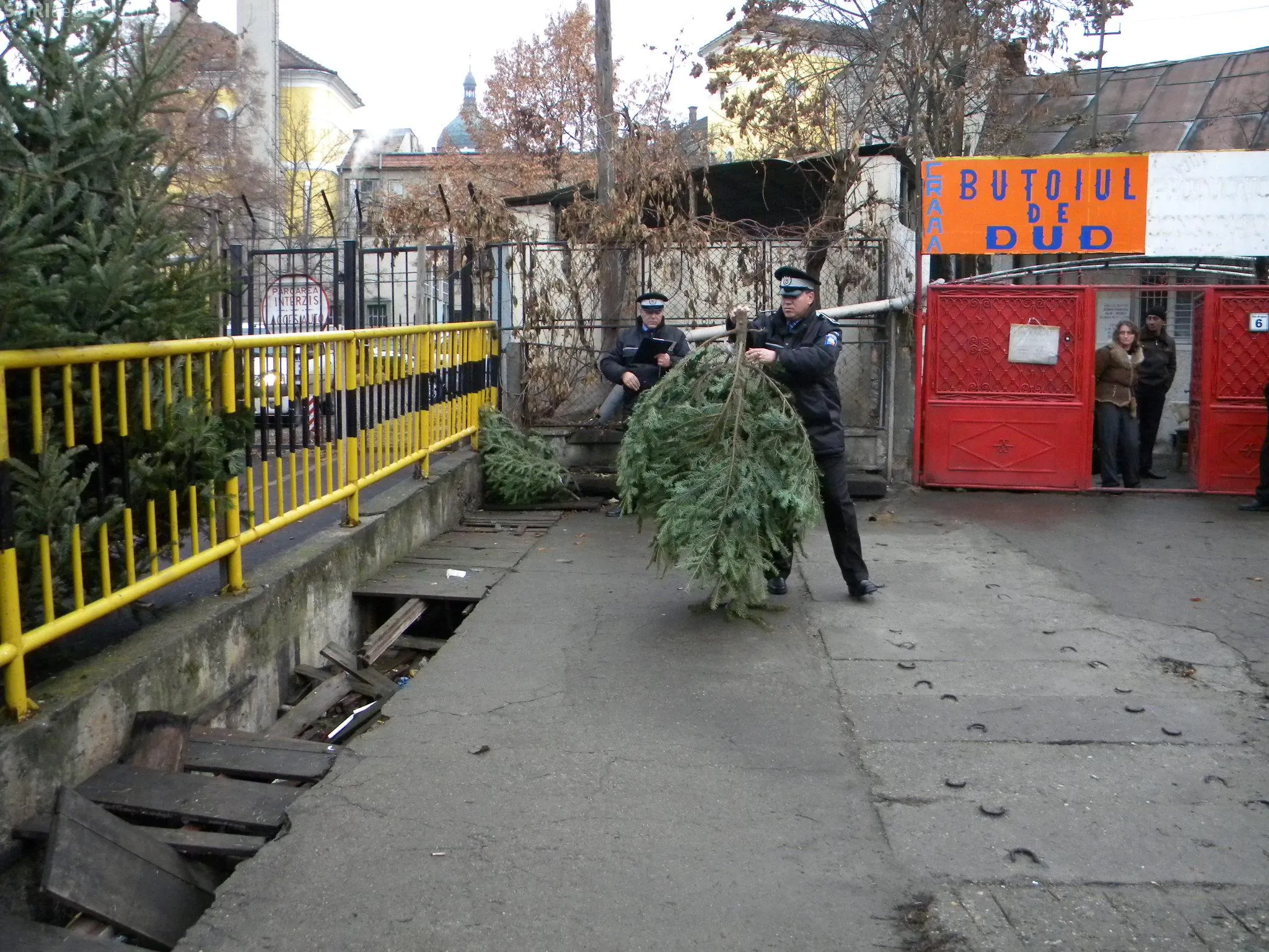 Politistii locali au confiscat, marti dimineata, in jurul orei 11.30, circa 20 de brazi din zona gheretelor de langa Piata Mihai Viteazu.