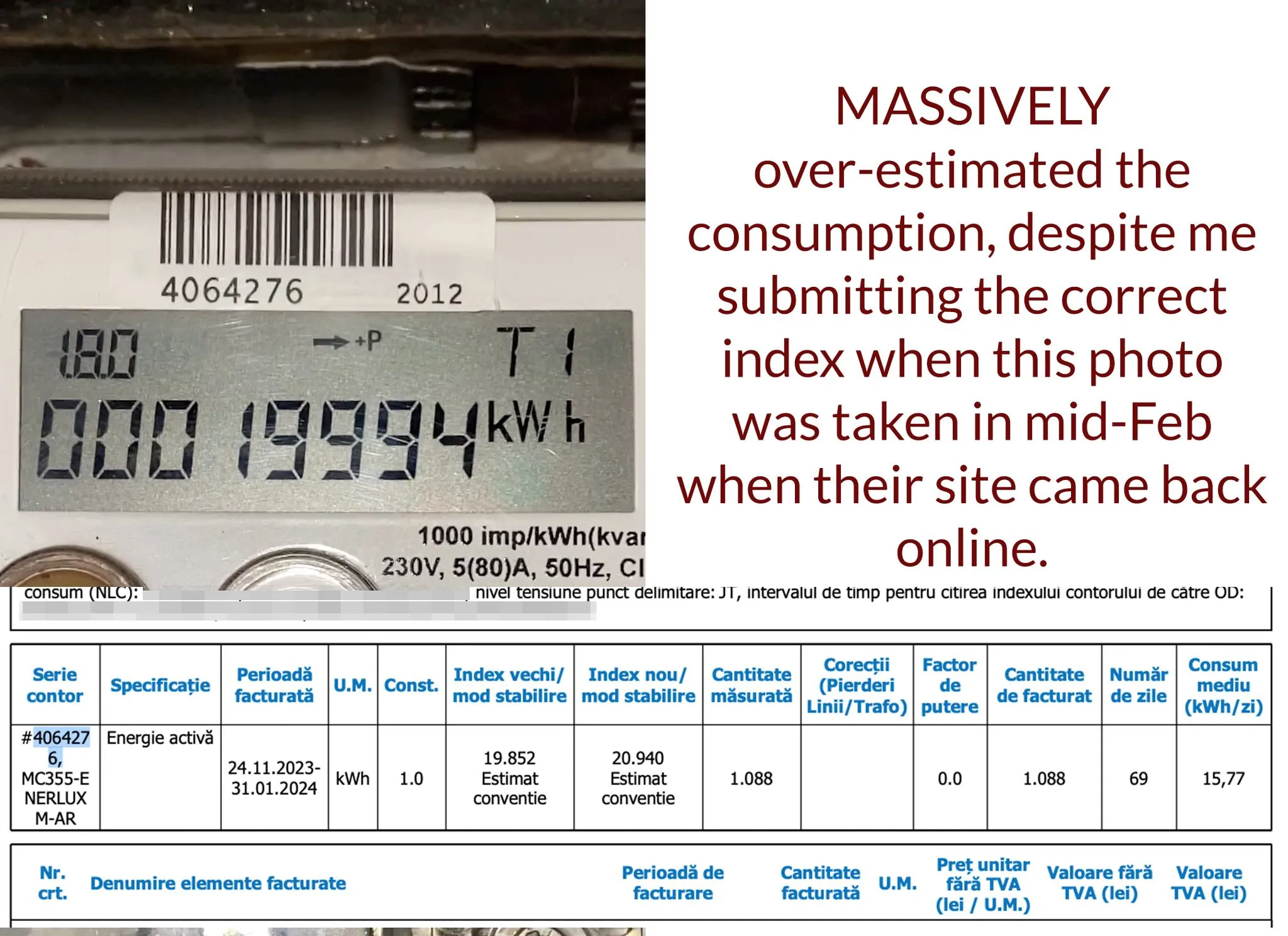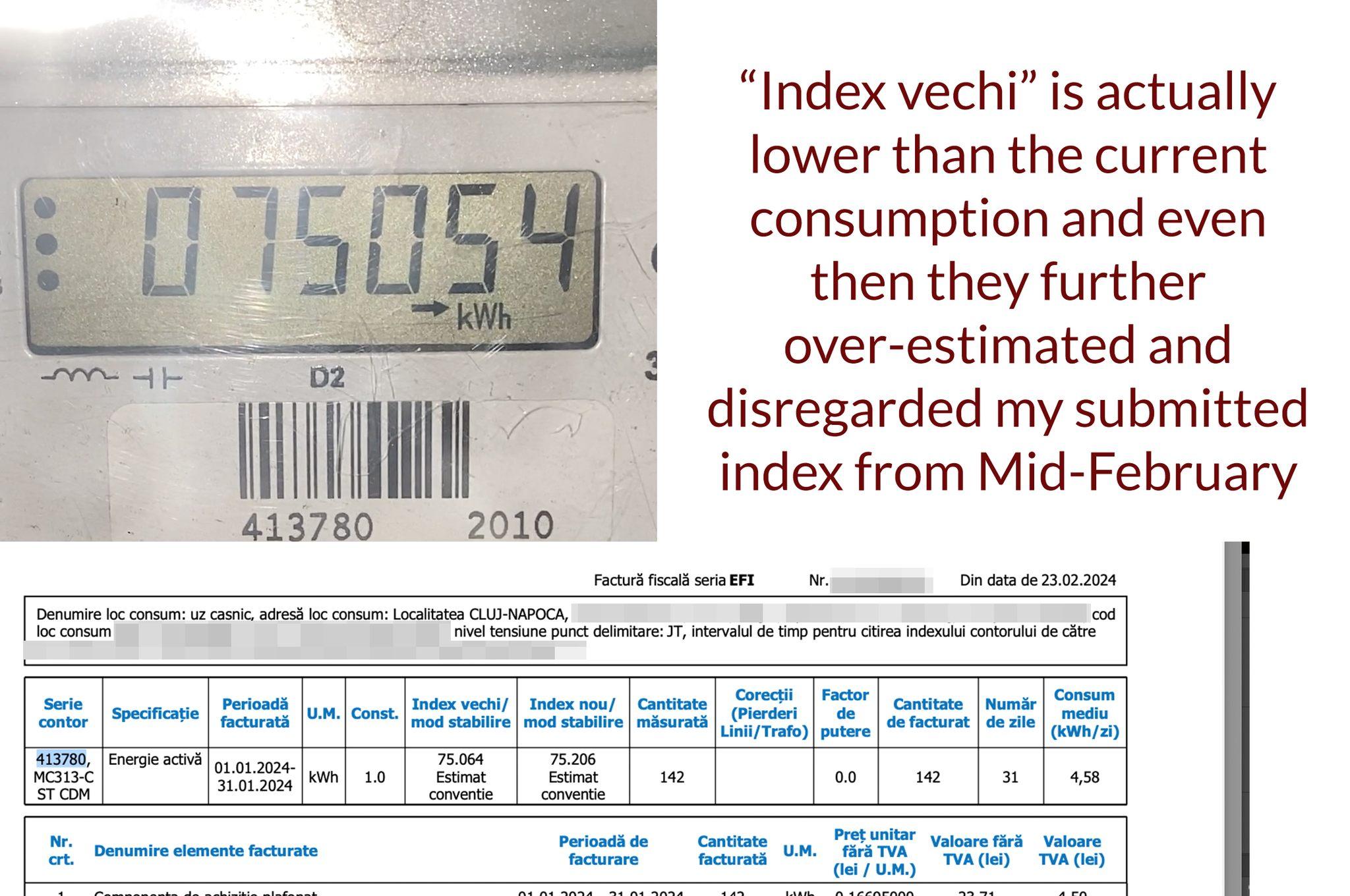Acesta a postat și indexurile contorului pentru a demonstra că nu a greșit cu nimic.