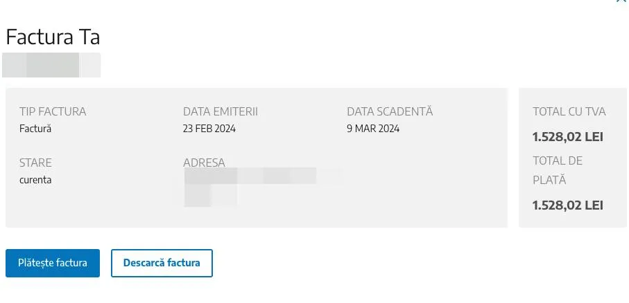 Nu am stat în locația respectivă din noiembrie și, cumva, mi-ați calculat un consum la factura de electricitate de 1528.02 lei... Chiar dacă adun ultimele cinci facturi primite, nu ajung la jumătate din suma facturată acum.