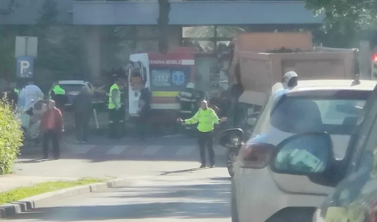 Victima prezintă leziuni grave la nivelul unui membru inferior, fiind transportată la spital.