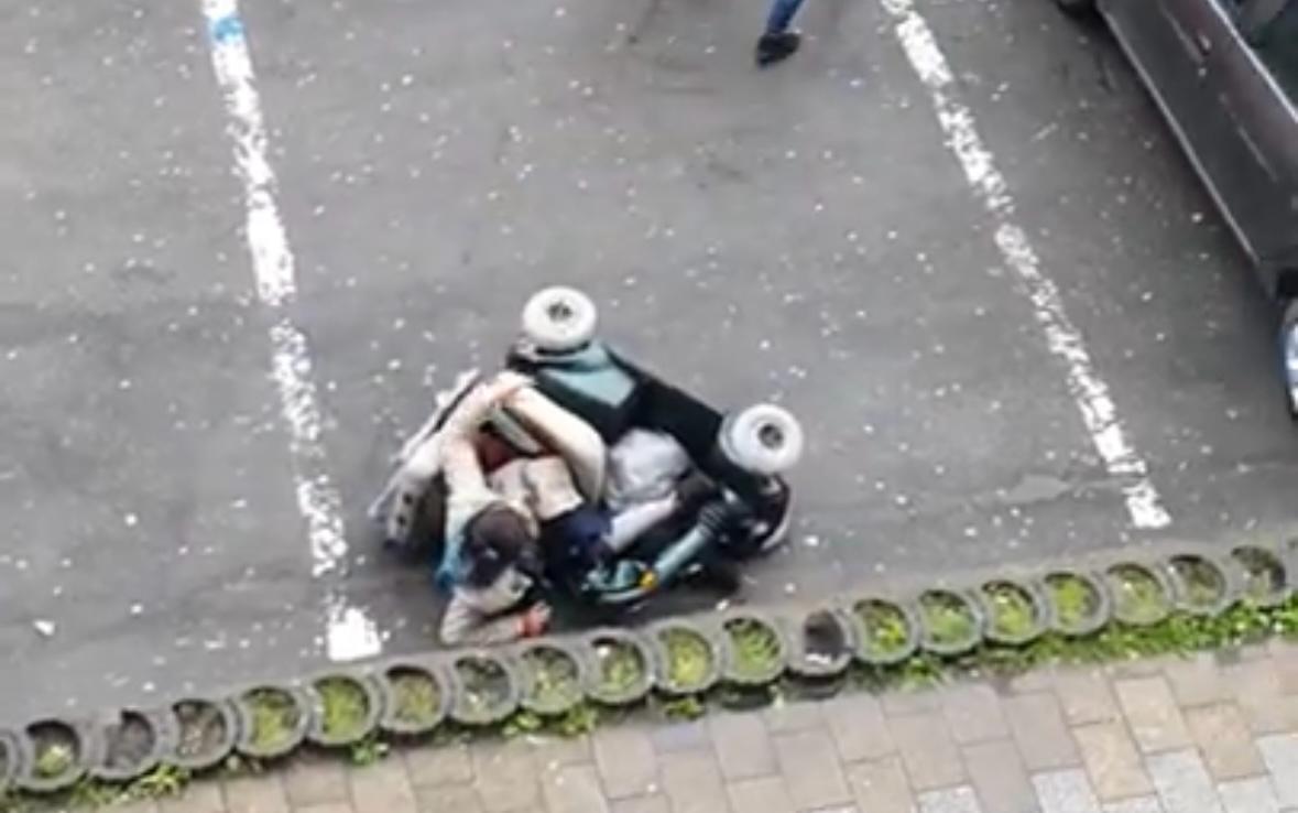 Copiii i-au smuls rucsacul și au fugit iar femeia a căzut din scaunul cu rotile.