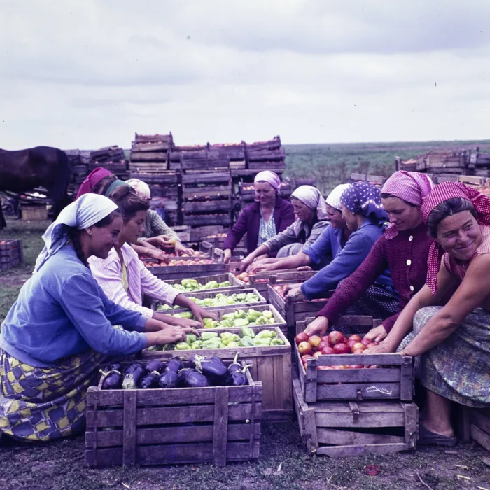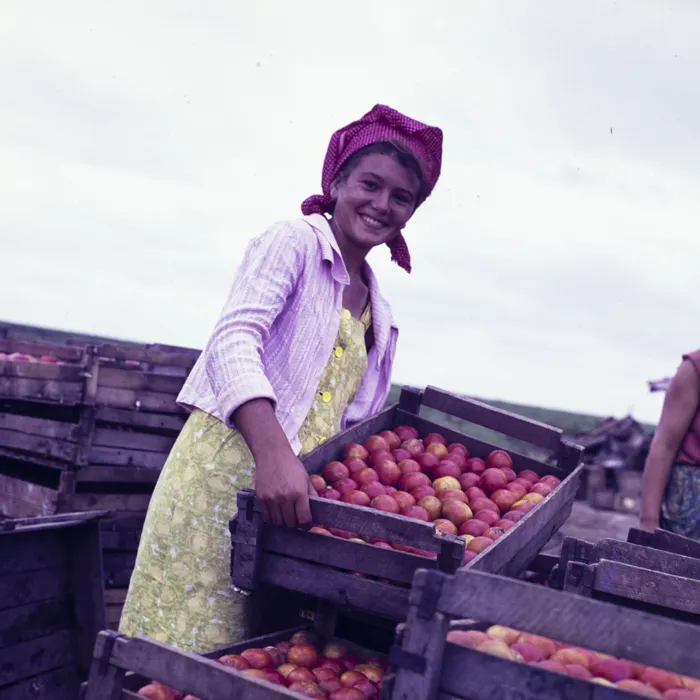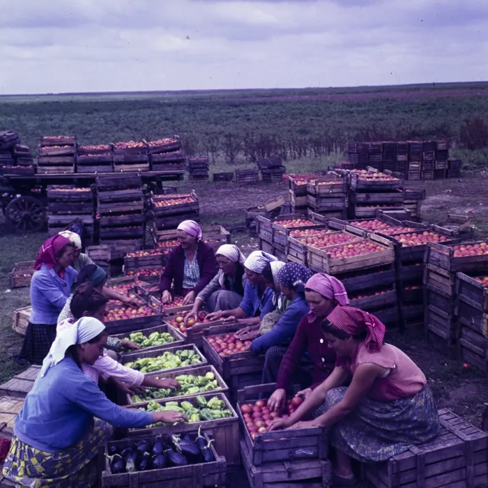 Conducerea comunistă realiza frecvent ședințe foto în timpul recoltelor, pentru a arăta cât de bine se simt tinerii care muncesc în slujba socialismului. DIn păcate, în ultimii ani ai regimului toată producția de fructe și legume ajungea la export.