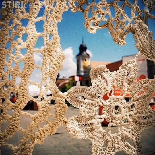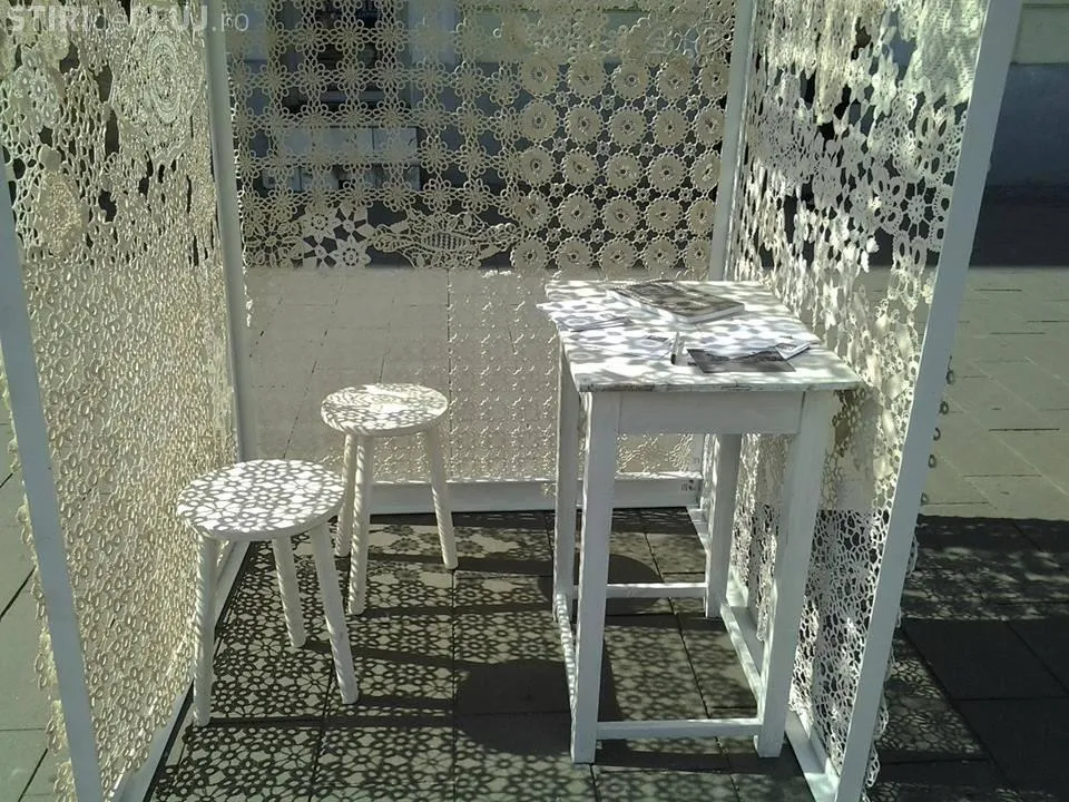 O clujeancă a amplasat pe pietonala de pe Bulevardul Eroilor o cabină de dantelă, unde trecătorii pot spune de ce iubesc orașul.