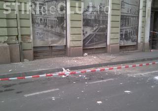 Clujenii care au trecut prin Piata Unirii prin dreptul vitrinelor librariei au sunat la 112 si echipaje de la politie au intervenit si au izolat zona. Pompierii au verificat balcoanele din care au cazut bucatile de zidarie si tencuiala.