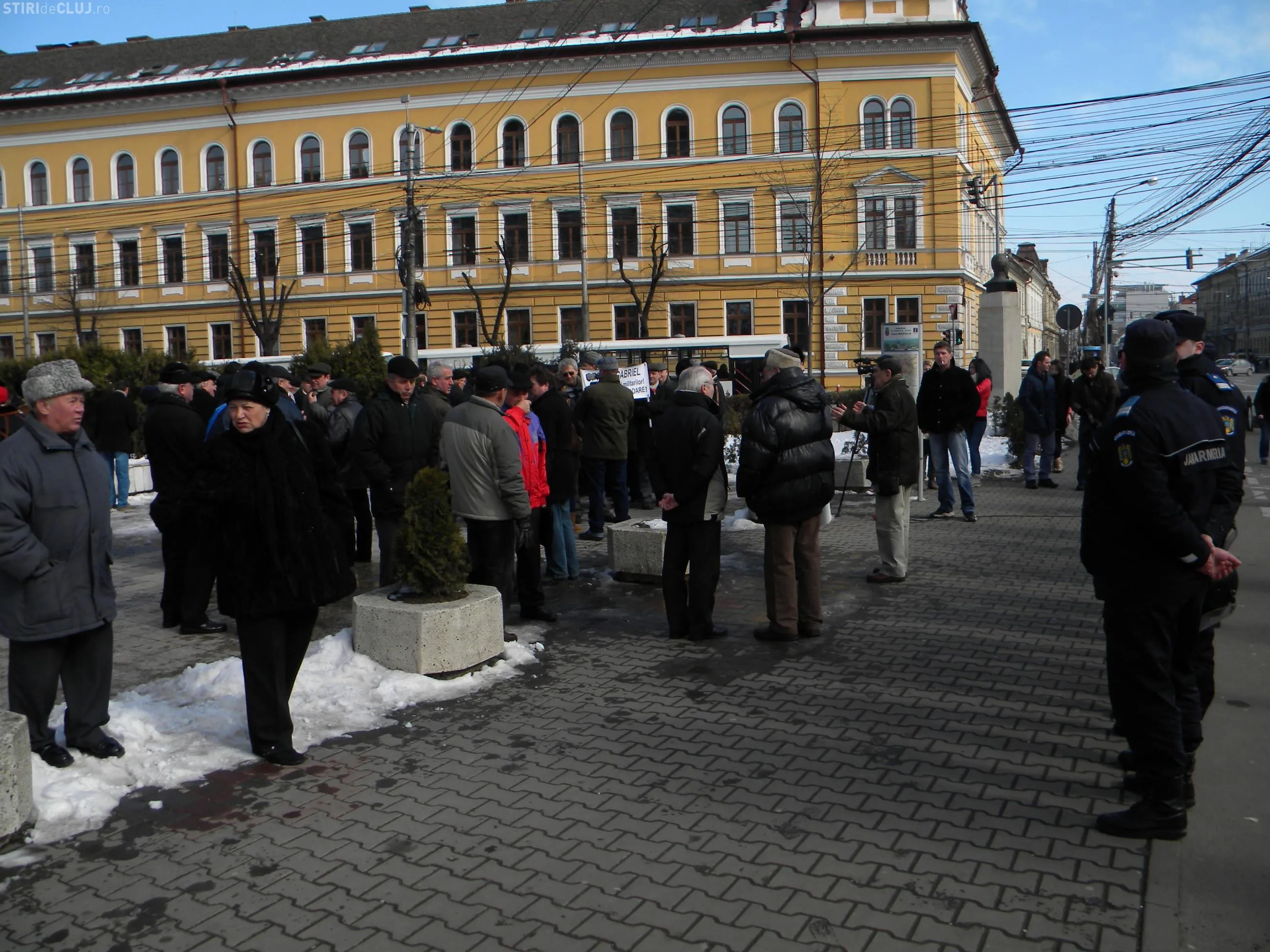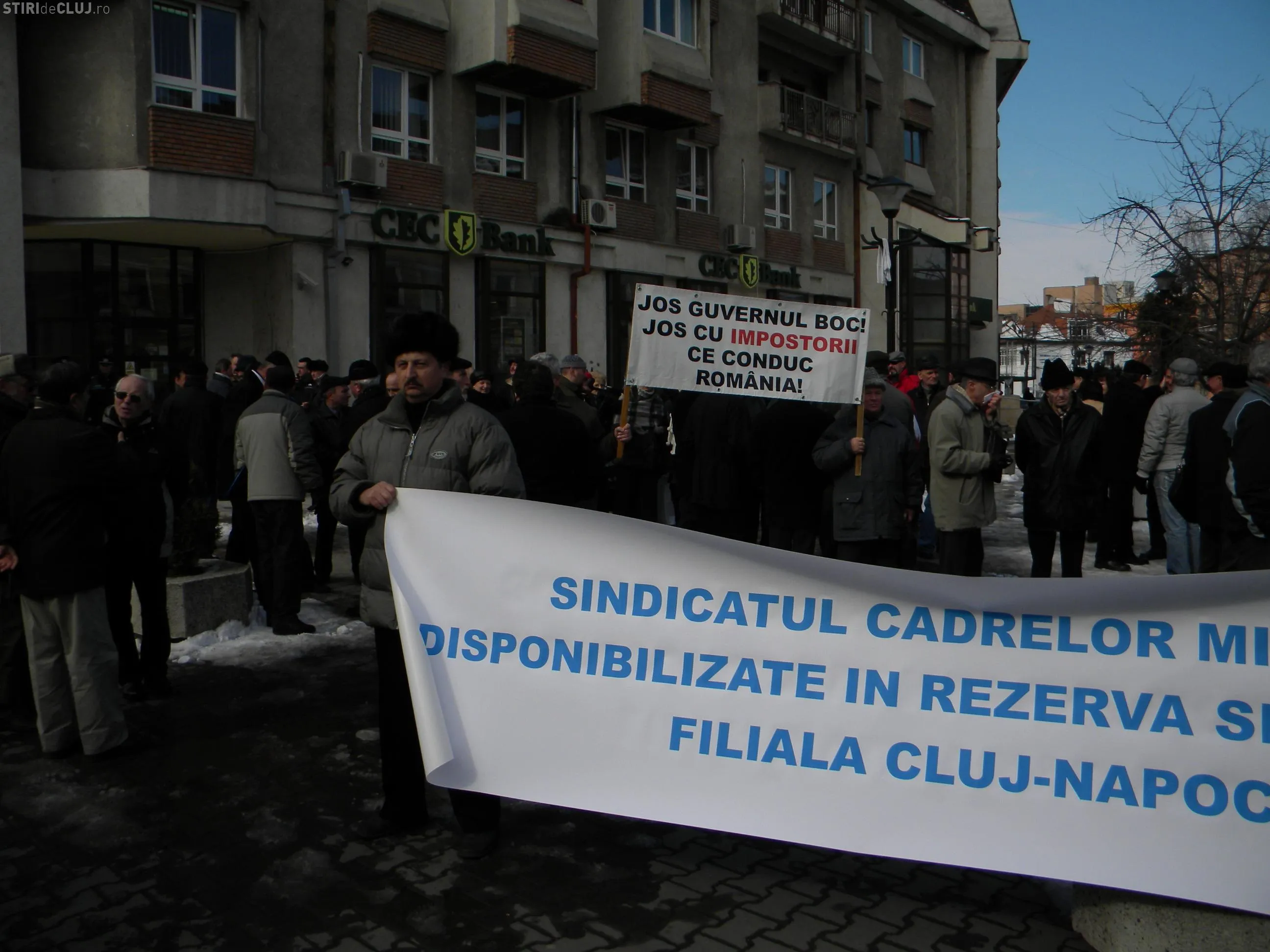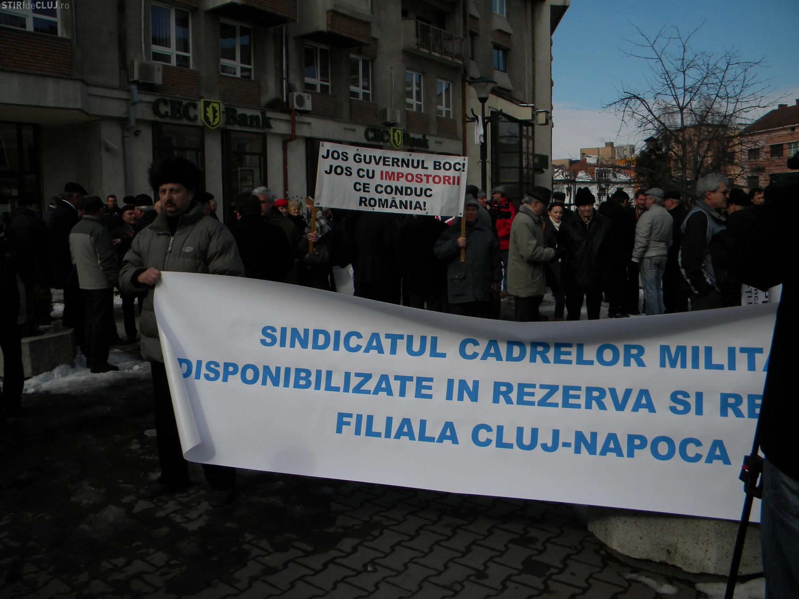 Cadrele militare in rezerva protesteaza in fata Prefecturii Cluj! Isi cer pensiile inapoi - VIDEO si FOTO