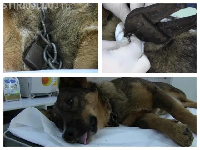 Un câine a fost dus de urgență la cabinetul veterinar, după ce a fost găsit pe străzile Dejului, având răni grave în jurul gâtului. Rănile au fost cauzate de un lanț prins cu lacăt, cu care animalul era strâns.