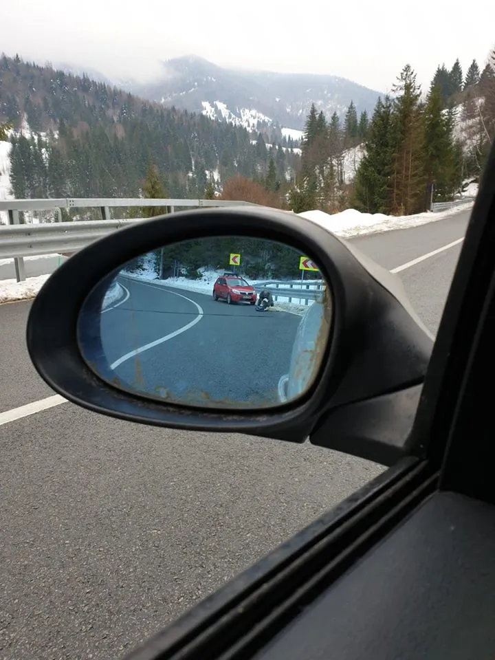 Un șofer cu prezență de spirit a apucat să îi facă fotografii autorului.