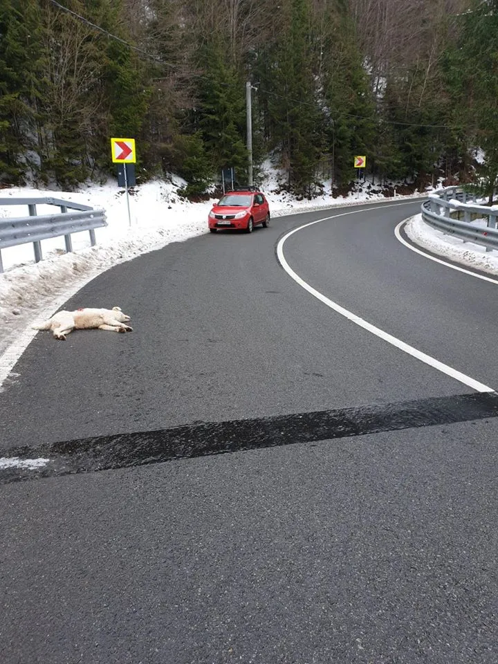 Câine împușcat pe un drum din Maramureș de un șofer. Autorul a fost fotografiat și trebuie identificat - FOTO